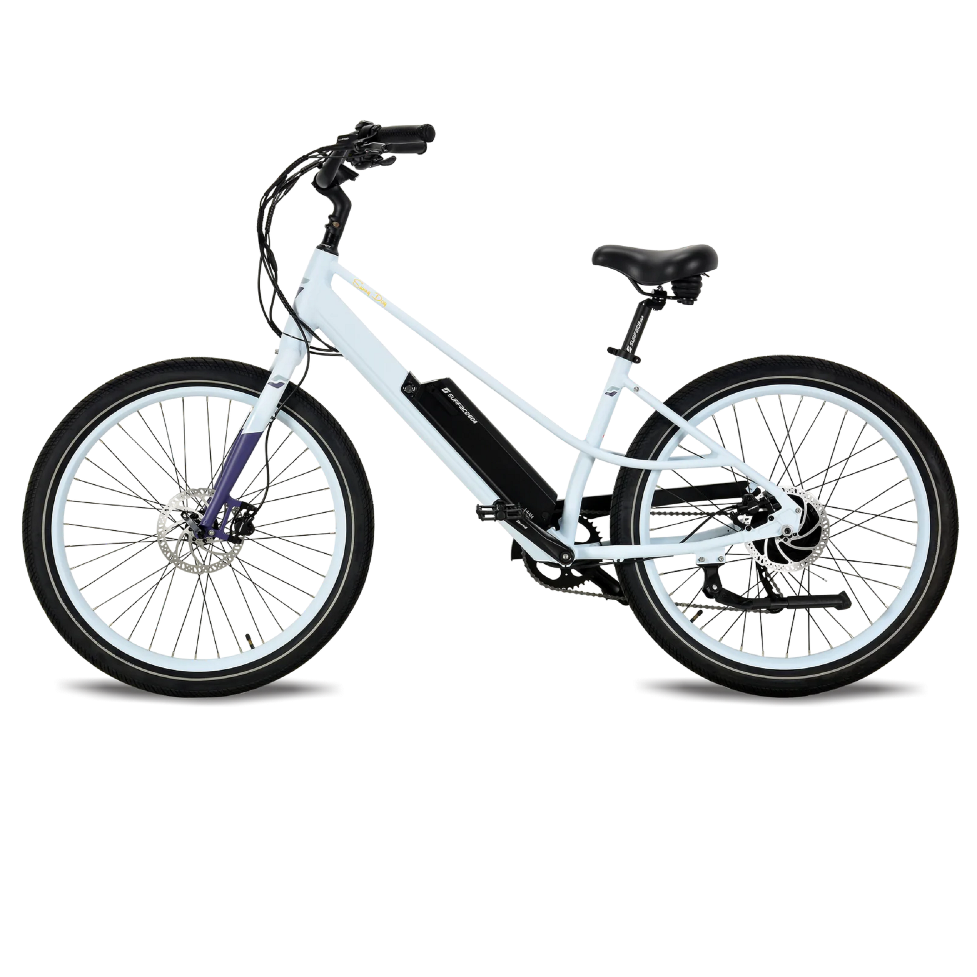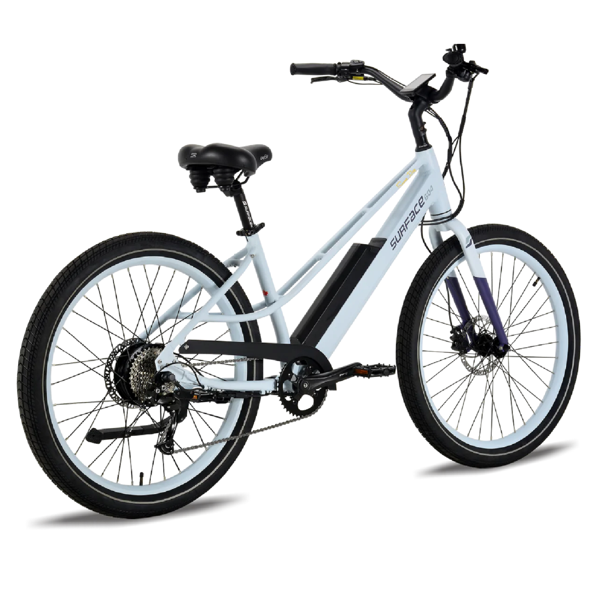 The Surface 604 500W Sunny Day Cruising Electric Bike offers three high-capacity battery options with proprietary designs.