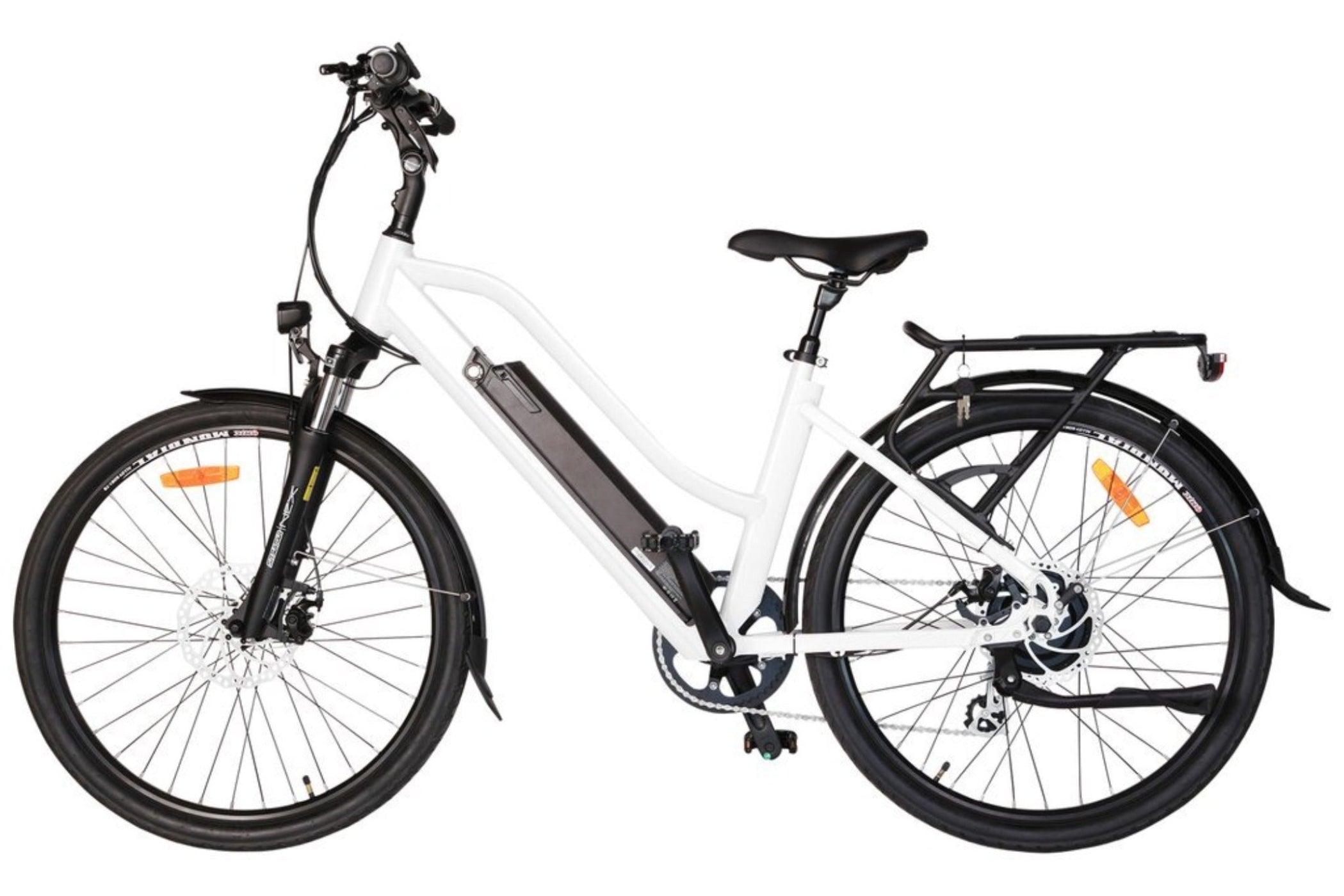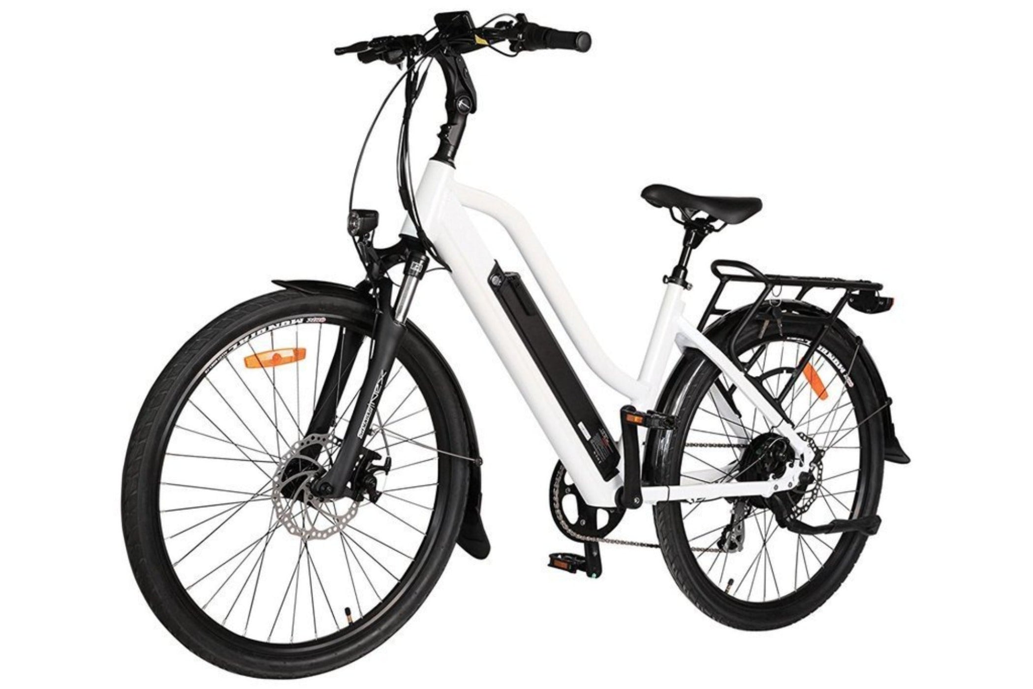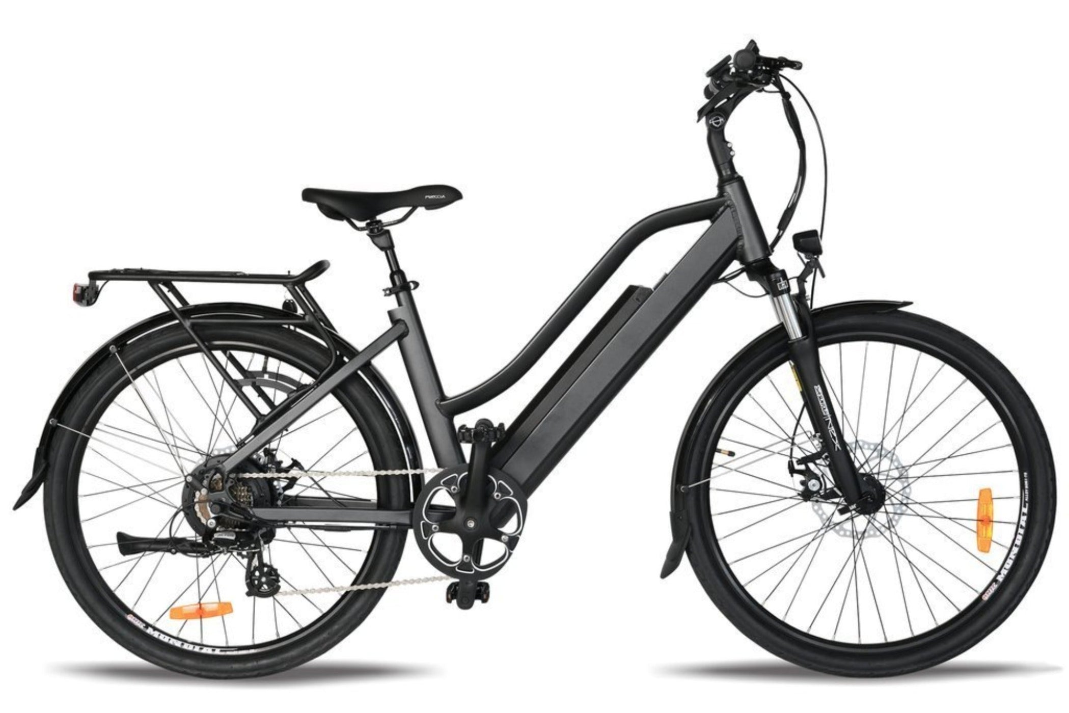 A: A sleek, user-friendly e-bike with a low step-through frame, ideal for urban commuting and recreational riding.