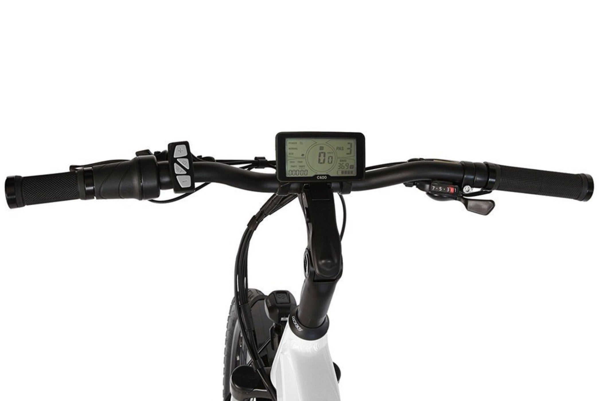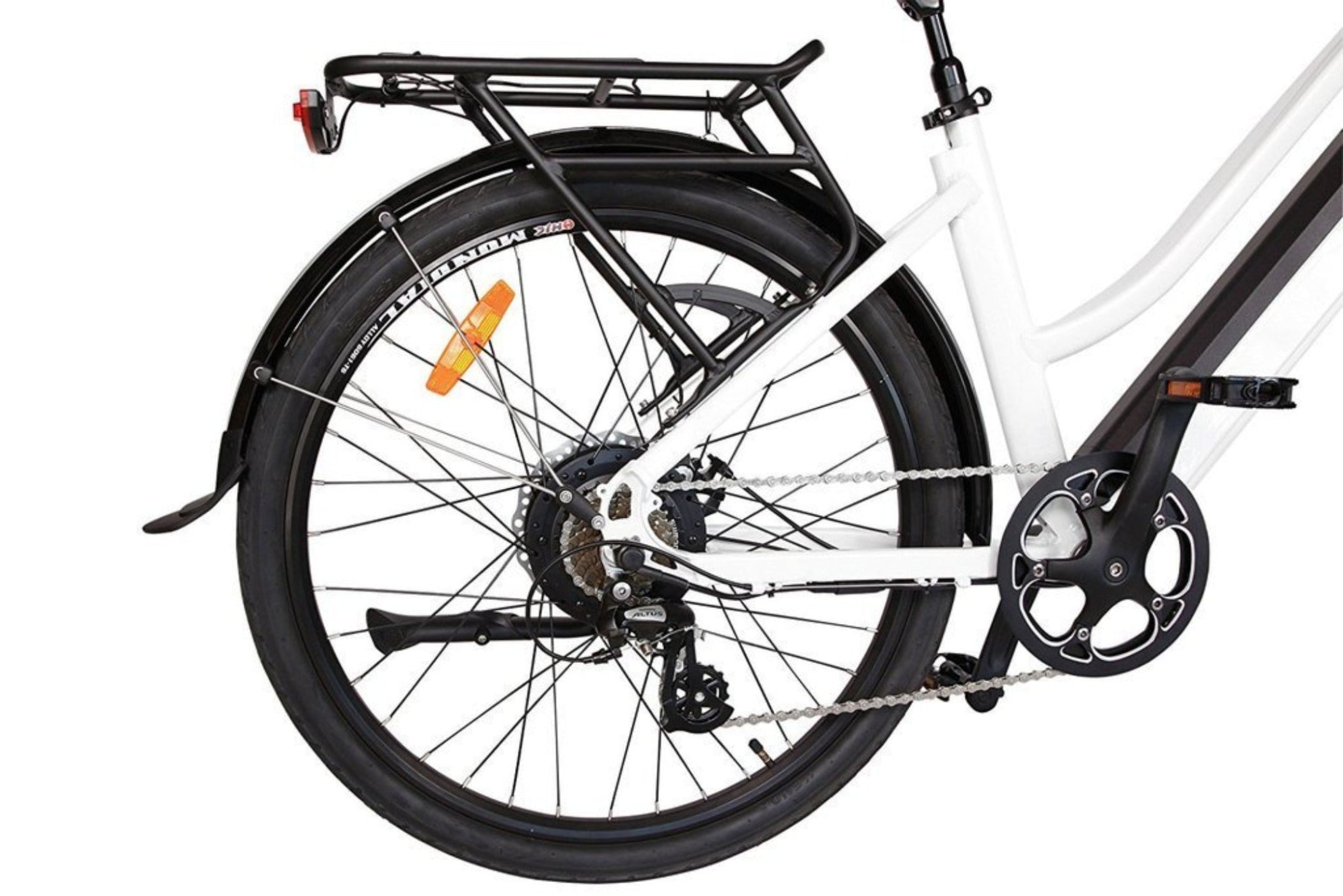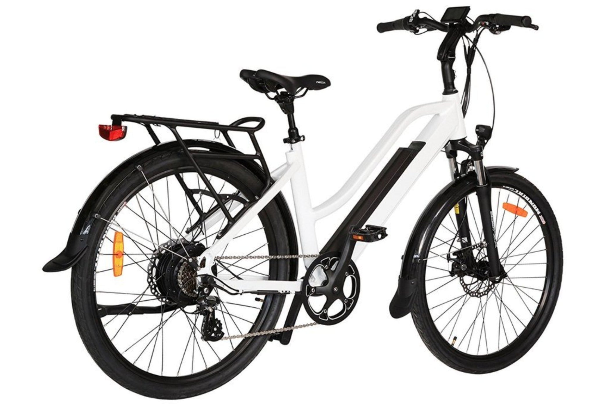 A: A sleek, user-friendly e-bike with a low step-through frame, ideal for urban commuting and recreational riding.