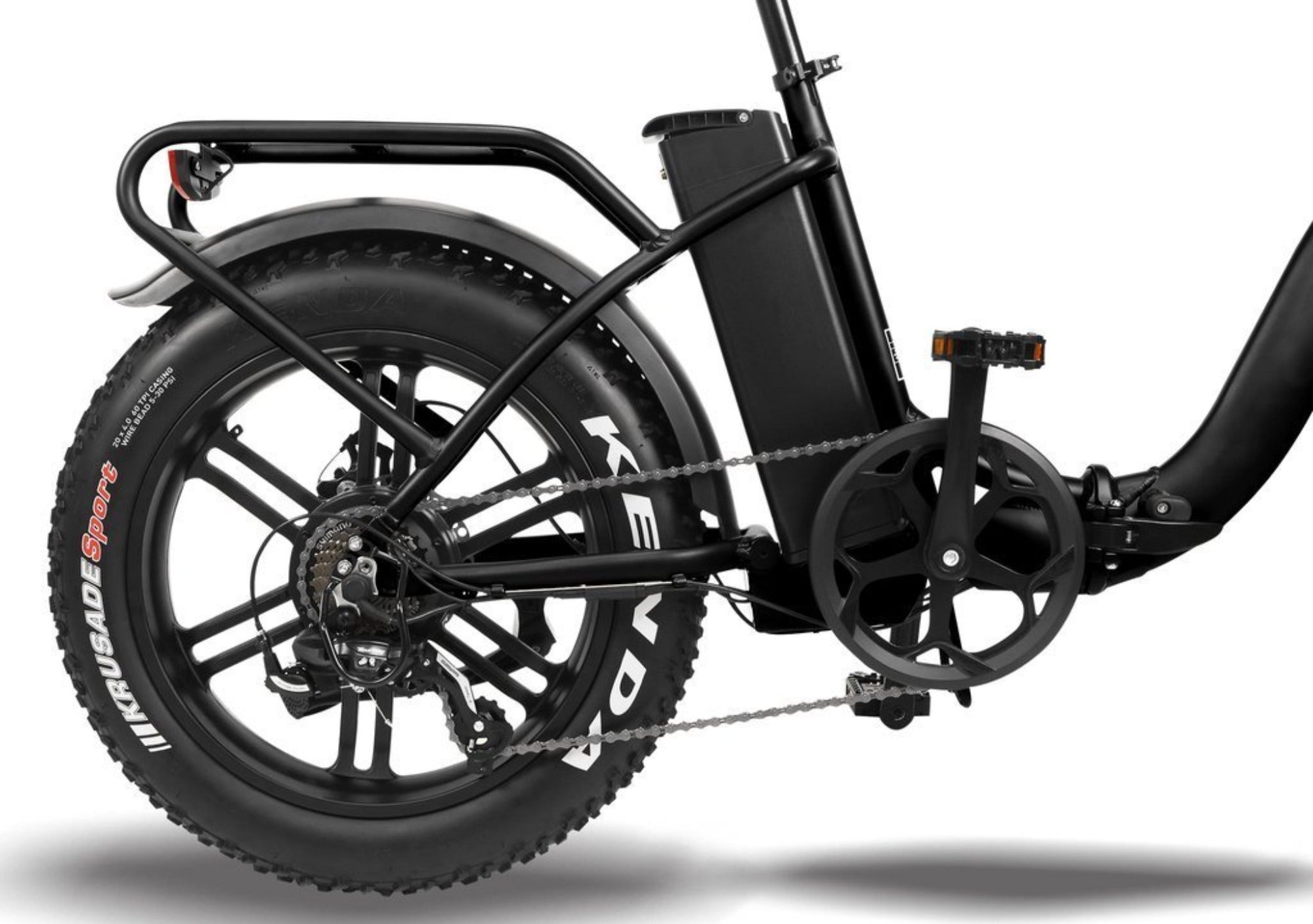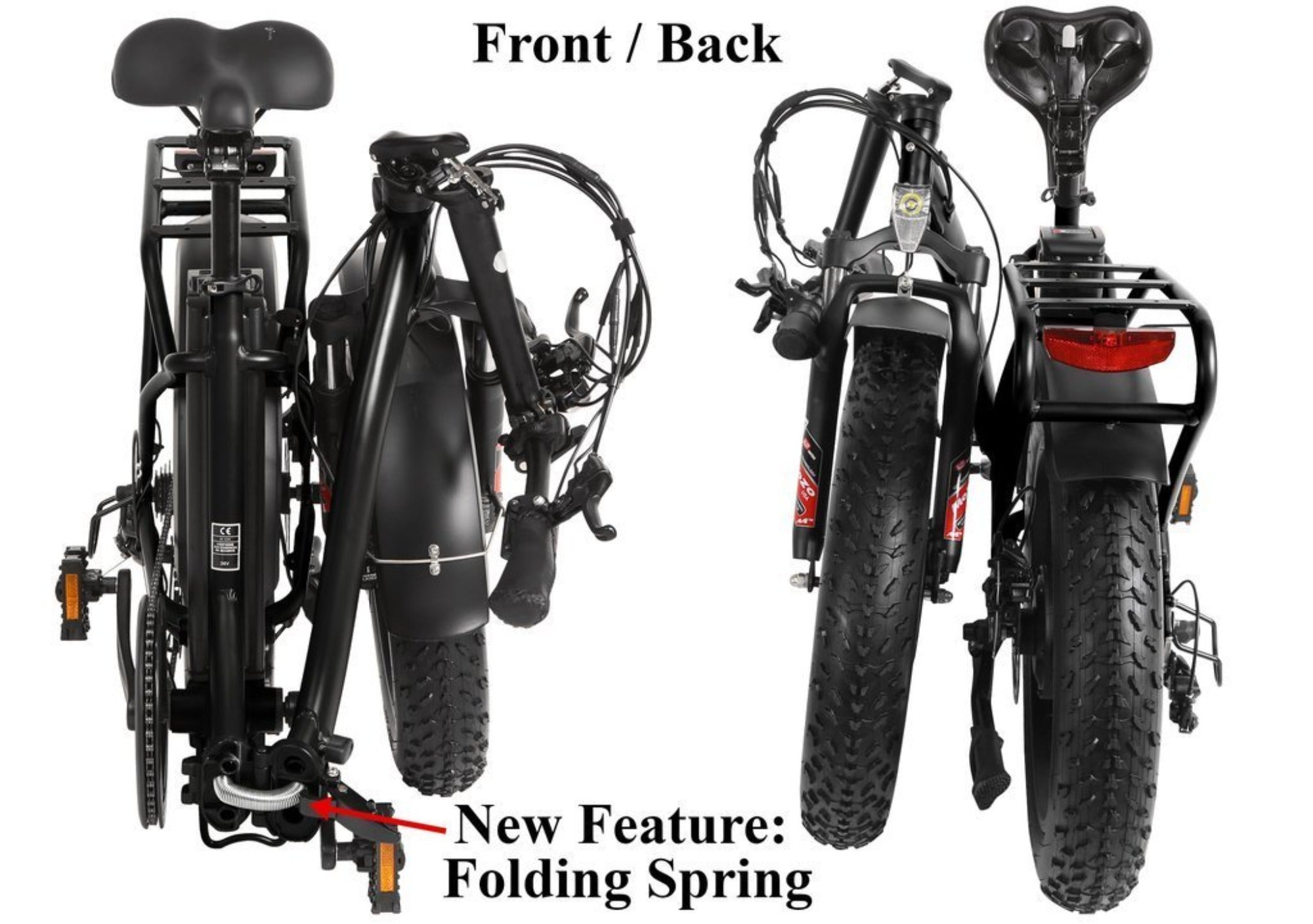 The 350W Fat Black 2-Way bike has a quick-release mid-frame folding joint and a front wheel, allowing easier transportation to your favorite destinations. When you are headed to longer journeys, engage the full-throttle option, which can instantly accelerate the bike in a fraction of seconds without the need to apply physical force. The 20-inch fat tires mute down the bumps on uneven paths, so you enjoy a smooth and stress-free ride.