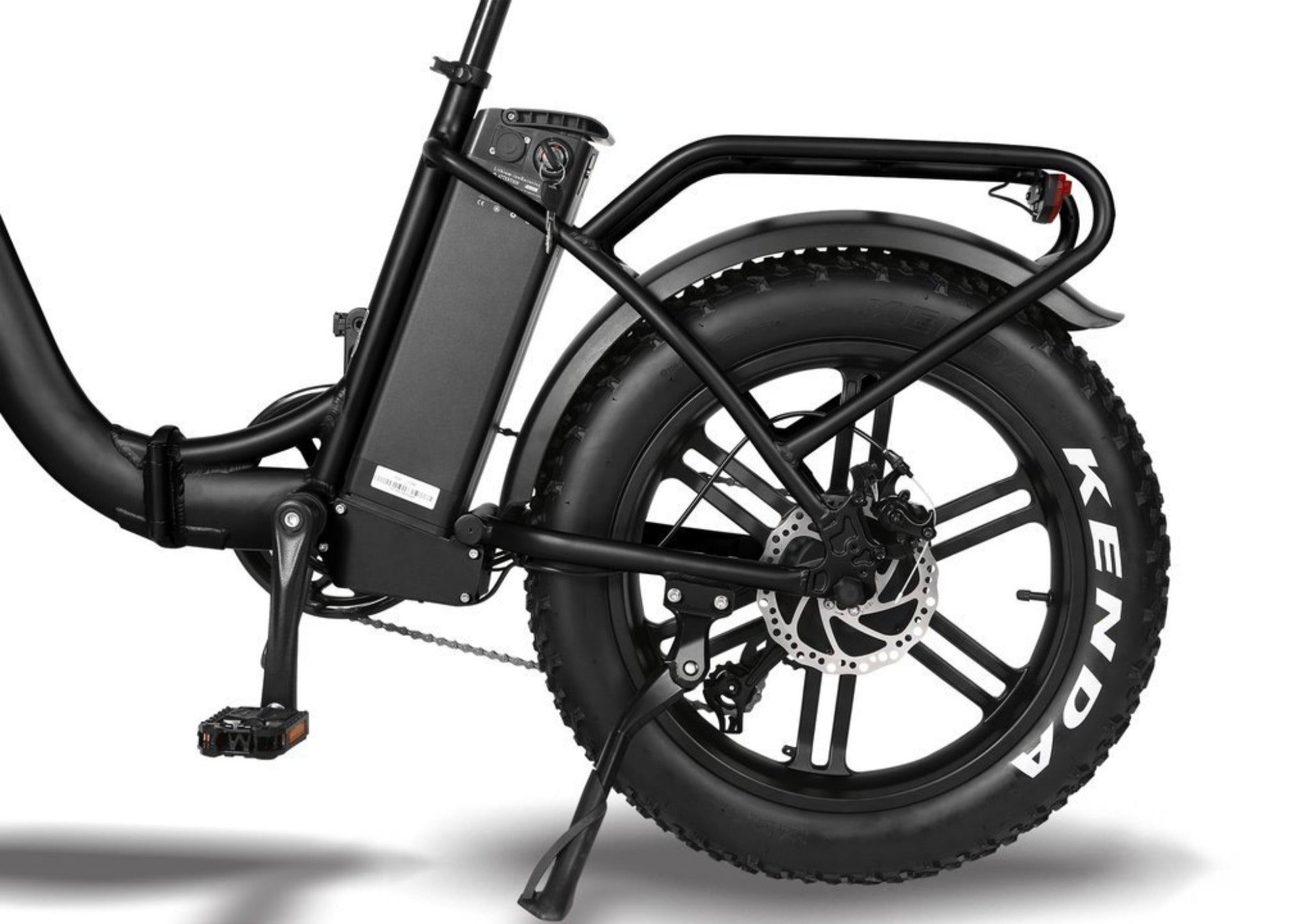Fat Tires: Equipped with 20" x 4.0" Kenda Krusade Sport tires, offering excellent traction and stability on various terrains, including sand, snow, and gravel