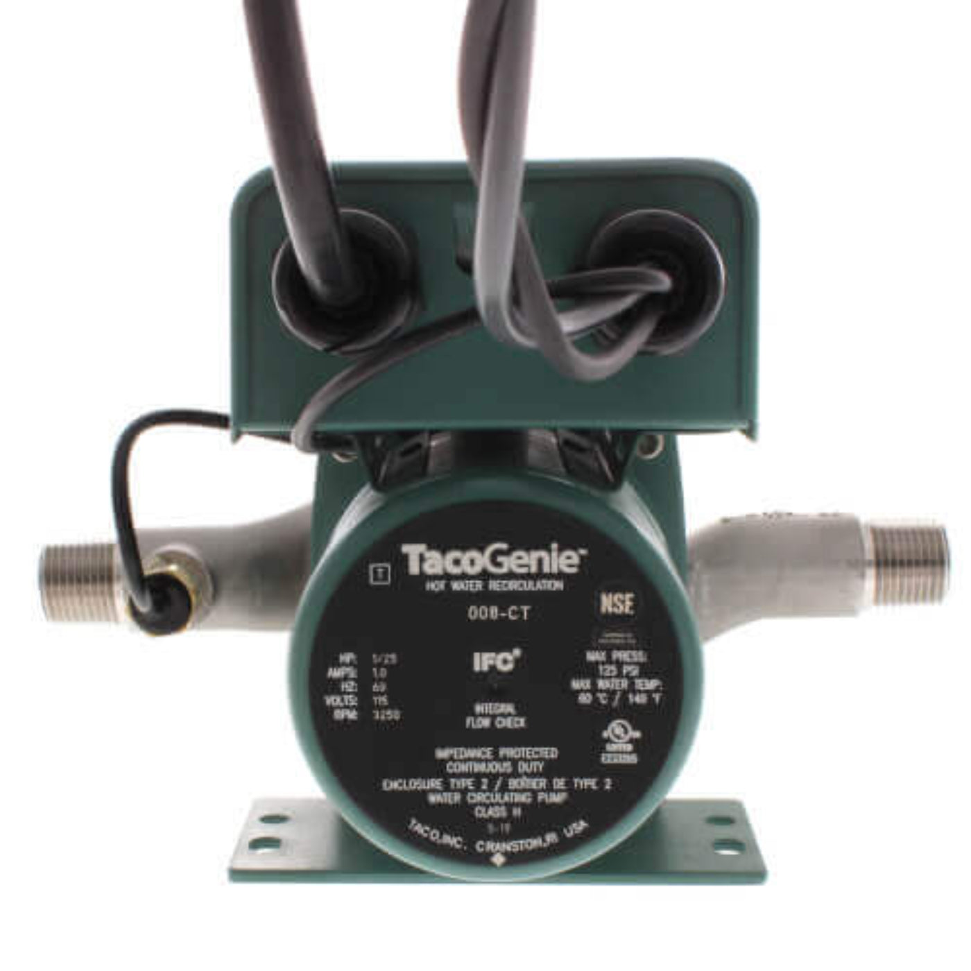 The TacoGenie 006-CT is a reliable pump designed to provide hot water convenience and efficiency. This pump operates continually, delivering hot water on demand while conserving energy and reducing waste. The TacoGenie saves significant amounts of water by circulating cool water back to the heater, eliminating the need to let water run down the drain while you wait for heat