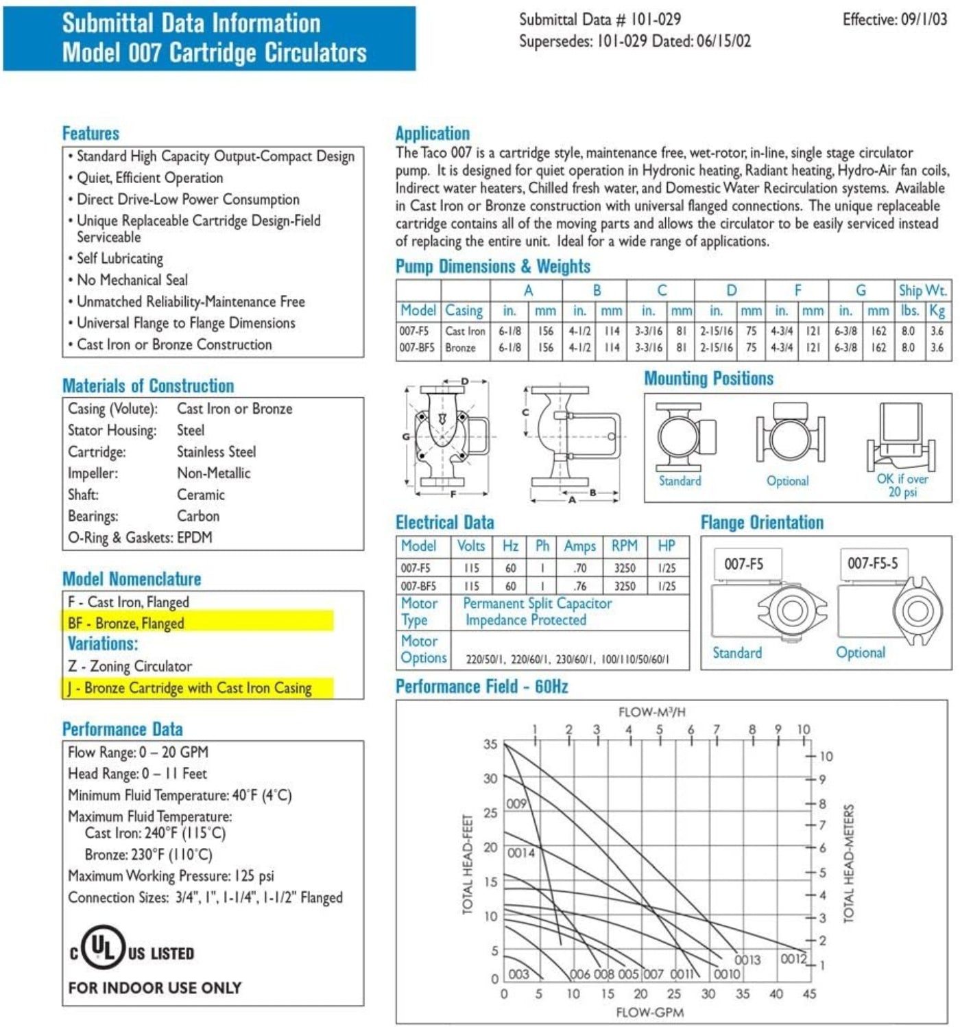 Q: What is the Taco 007-BF5-J?