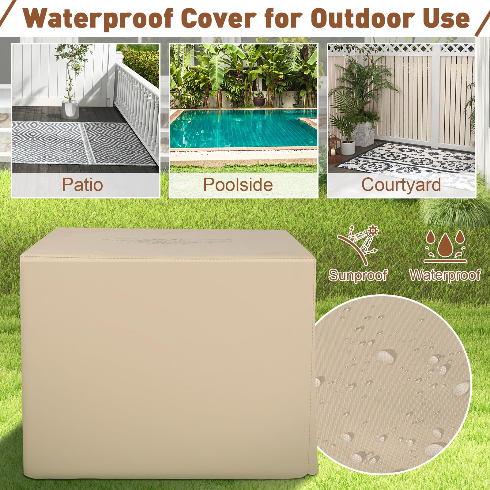 Have wonderful and unforgettable evenings with this 34.5-inch propane fire pit table! With a powerful 50,000BTU heat output, this square propane fire table will render you comfortable in a warm and cozy environment. More importantly, the removable metal lid makes it multifunctional, featuring both an outdoor coffee table and a propane fire pit. Additionally, durable materials as well as the study construction ensure durability and sturdiness. And the simulated brick appearance matches a lot of scenarios well, such as patio, garden and yard. With a detailed user’s manual, it is simple to operate it safely. When you need to put it outdoors, the provided PVC cover will offer help.