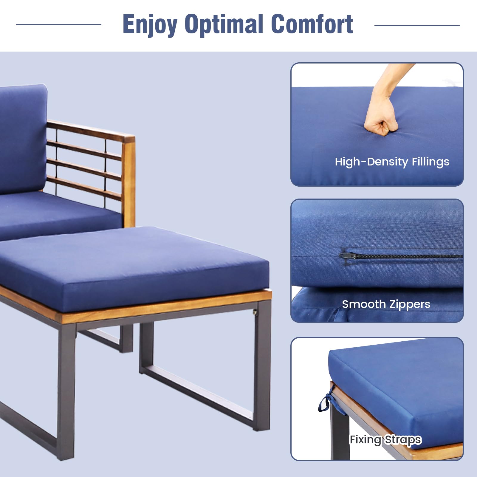 A: Yes! Acacia wood is naturally weather-resistant, but applying wood oil periodically and storing cushions indoors during bad weather is recommended for longevity.