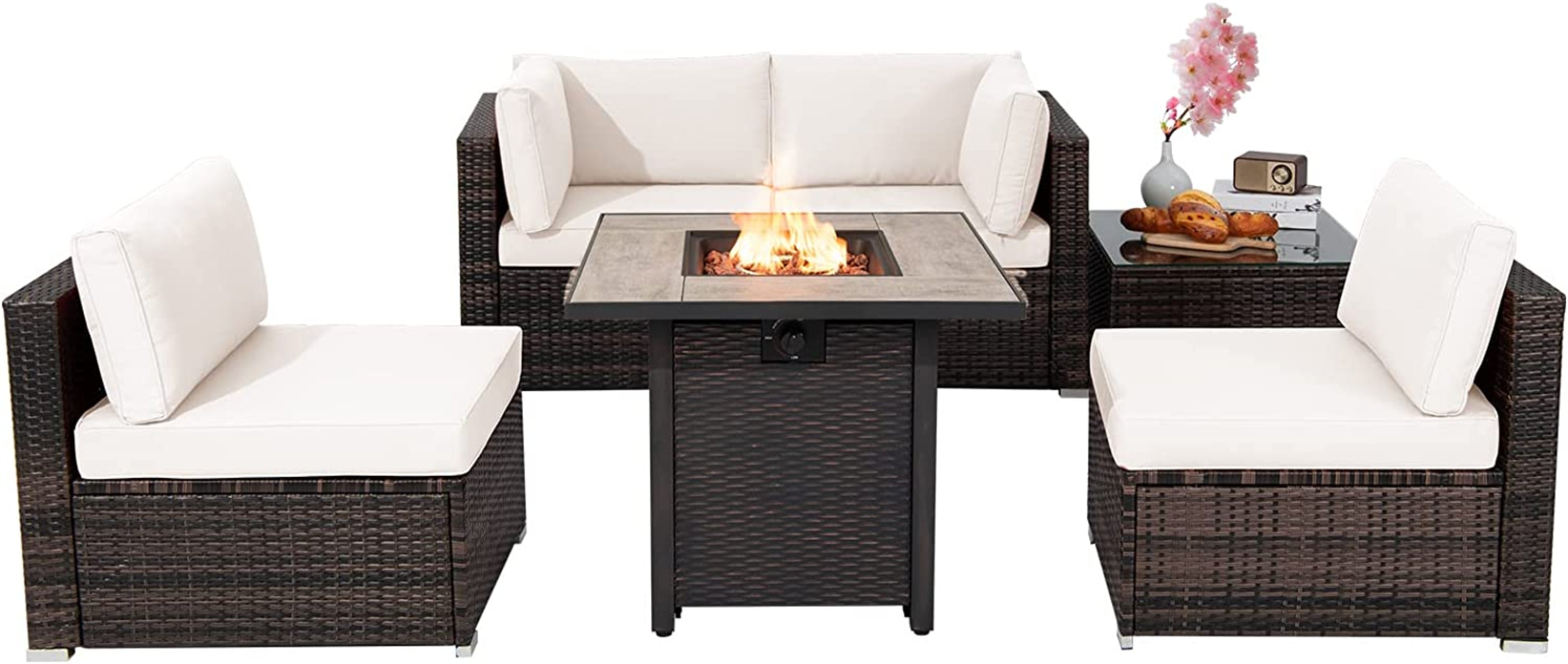 Stylish & Functional Outdoor Lounge Set: The Tangkula 6-Piece Outdoor Rattan Sofa Set offers comfortable seating and warmth, making it perfect for backyard gatherings and cozy nights outdoors.