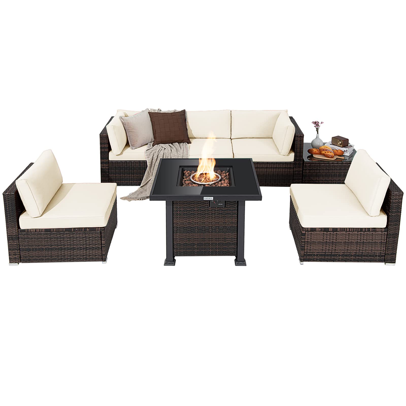 Great Value for Outdoor Comfort: Combining style, durability, and functionality, the Tangkula 7-Piece Patio Furniture Set with Fire Pit Table is a must-have for upgrading any outdoor living space.