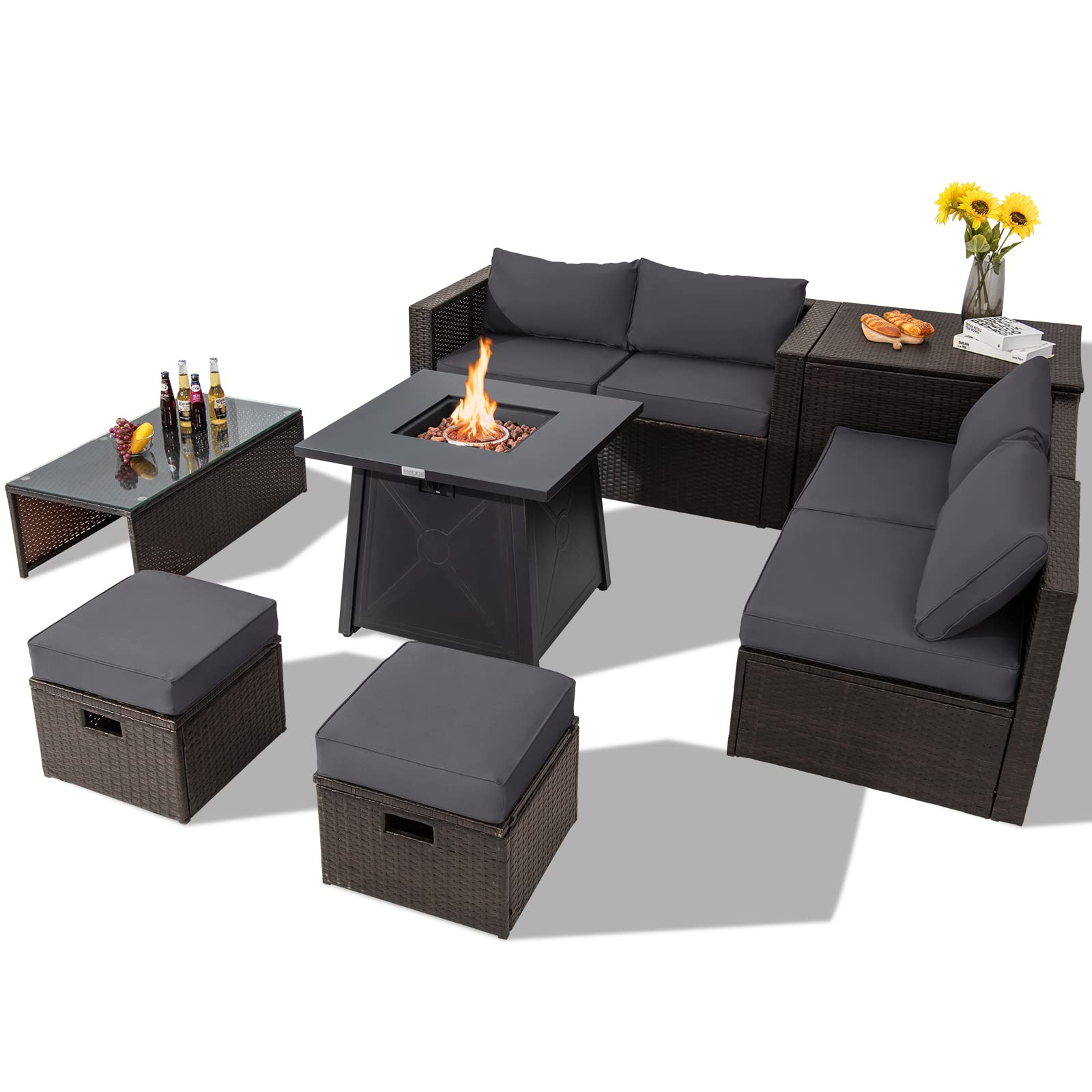 Great Value: Offering a combination of seating, storage, and ambiance in one set, the Tangkula 9-Piece Furniture Set with Fire Pit Table provides exceptional value for anyone looking to enhance their outdoor living area.