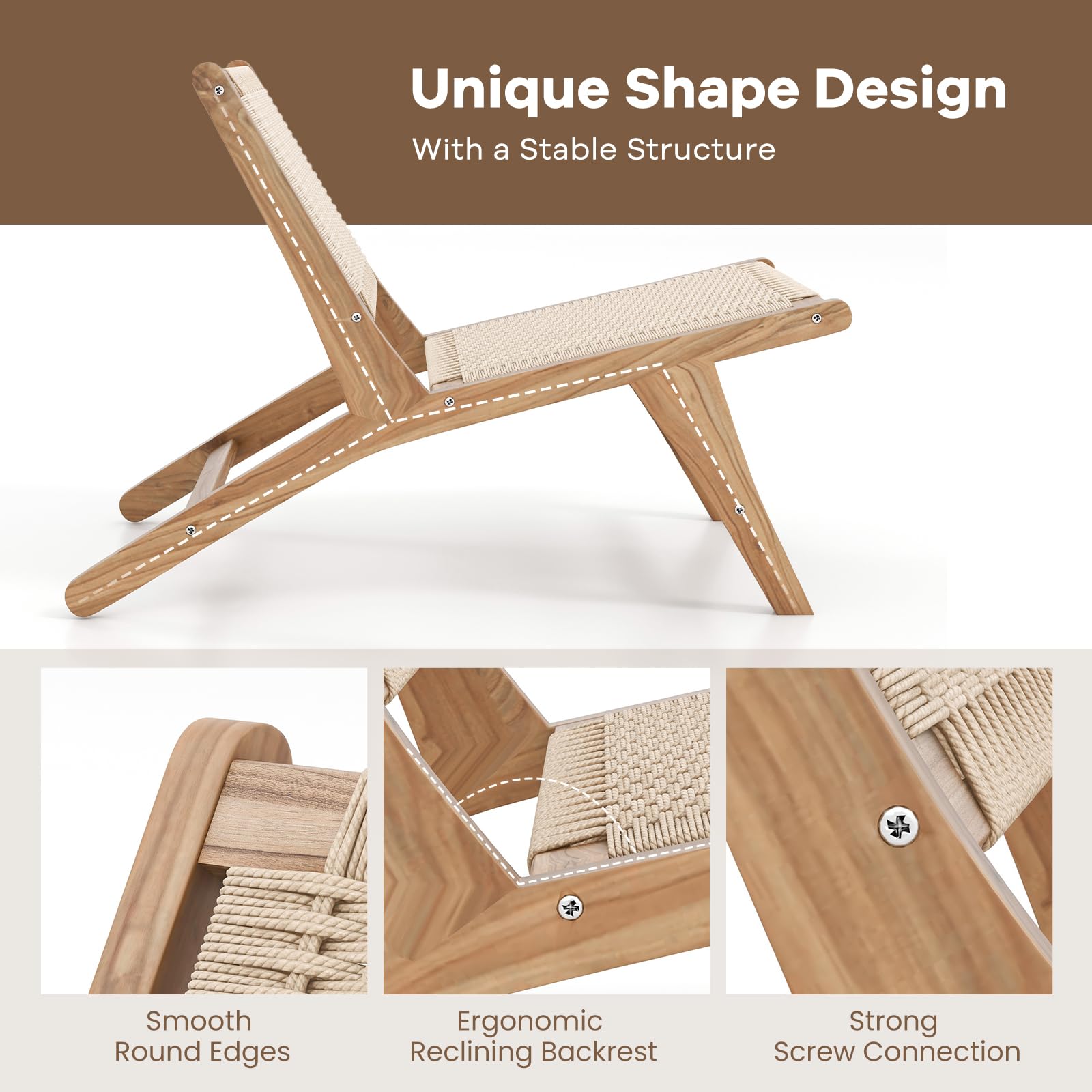 Designed with unique braided rope backrest and seat