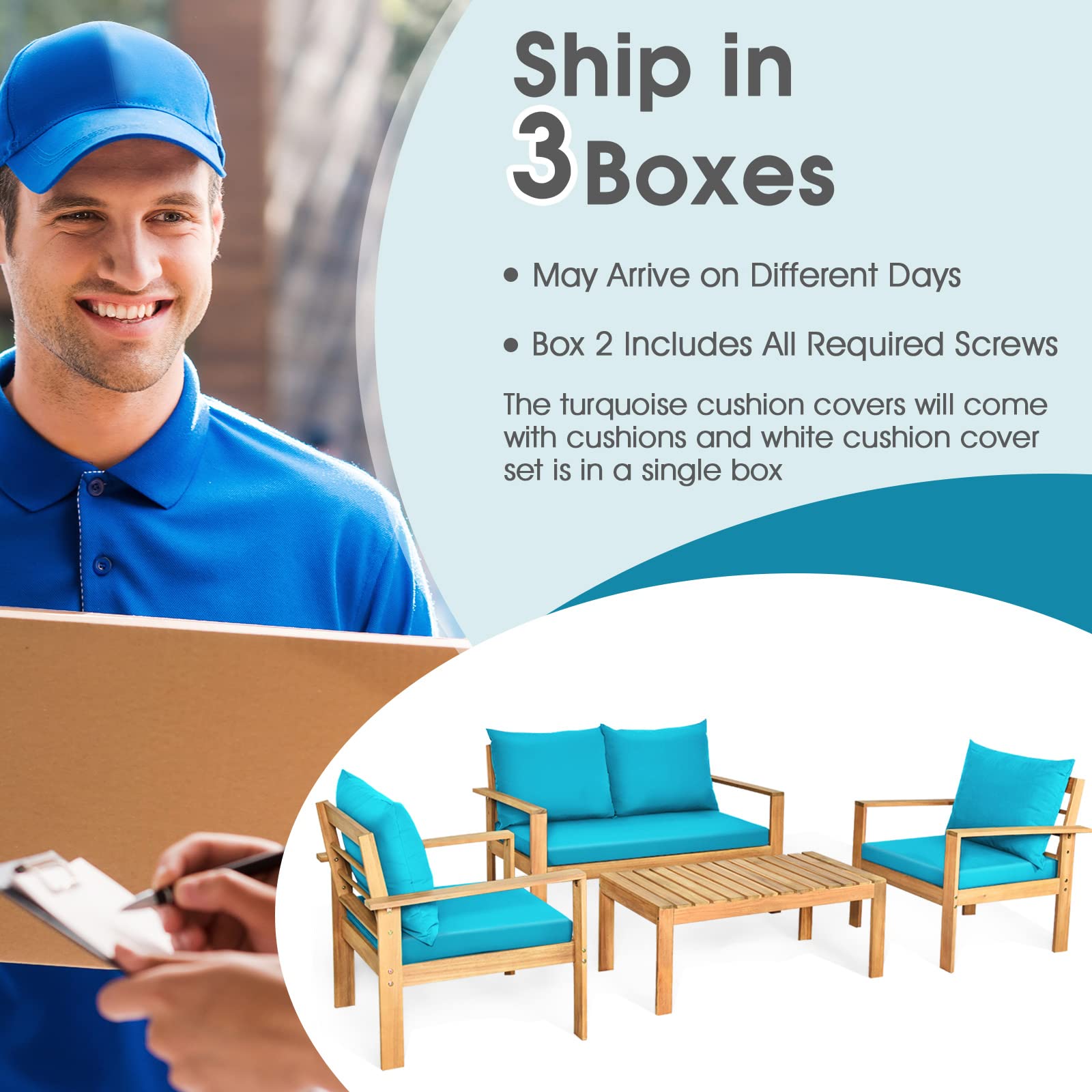 Tangkula Outdoor 4-Piece Acacia Wood Chat Set - HW64146WH-C+HW64146TU+