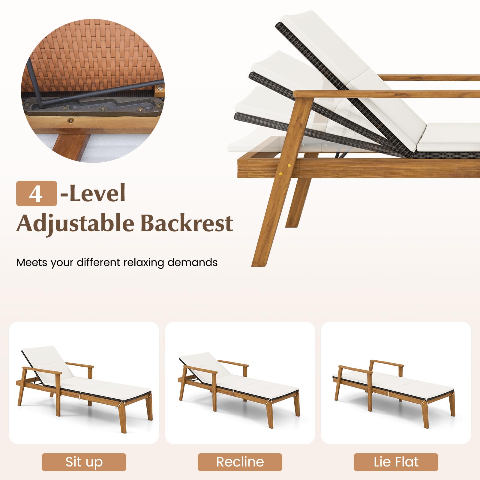Relax in Style & Comfort: The Tangkula Outdoor Chaise Lounge Chair Set features an ergonomic design with armrests and a 4-level adjustable backrest, allowing you to find the perfect reclining position for sunbathing, reading, or relaxing.