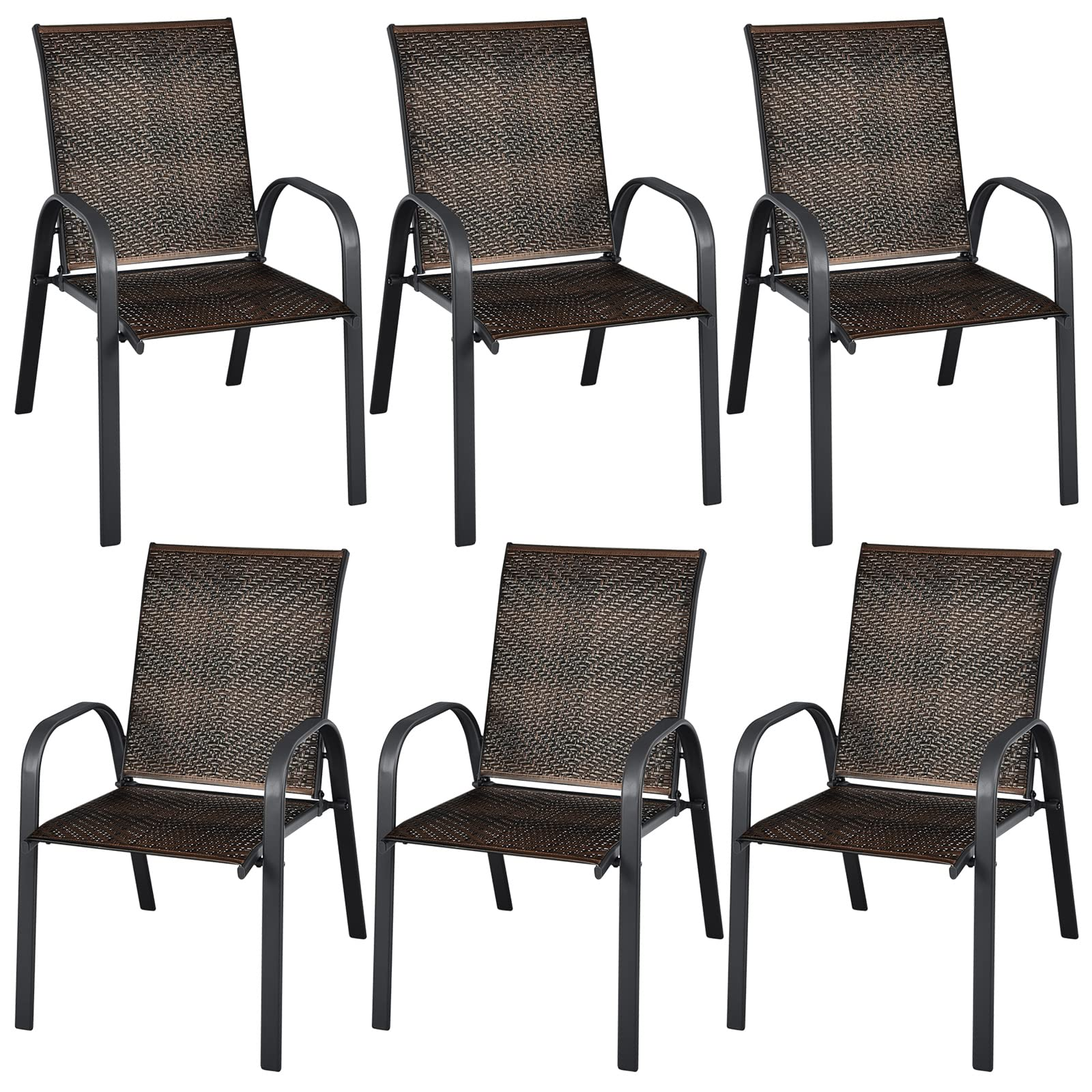 Tangkula Outdoor PE Wicker Stackable Chairs - 2*NP10511CF-6
