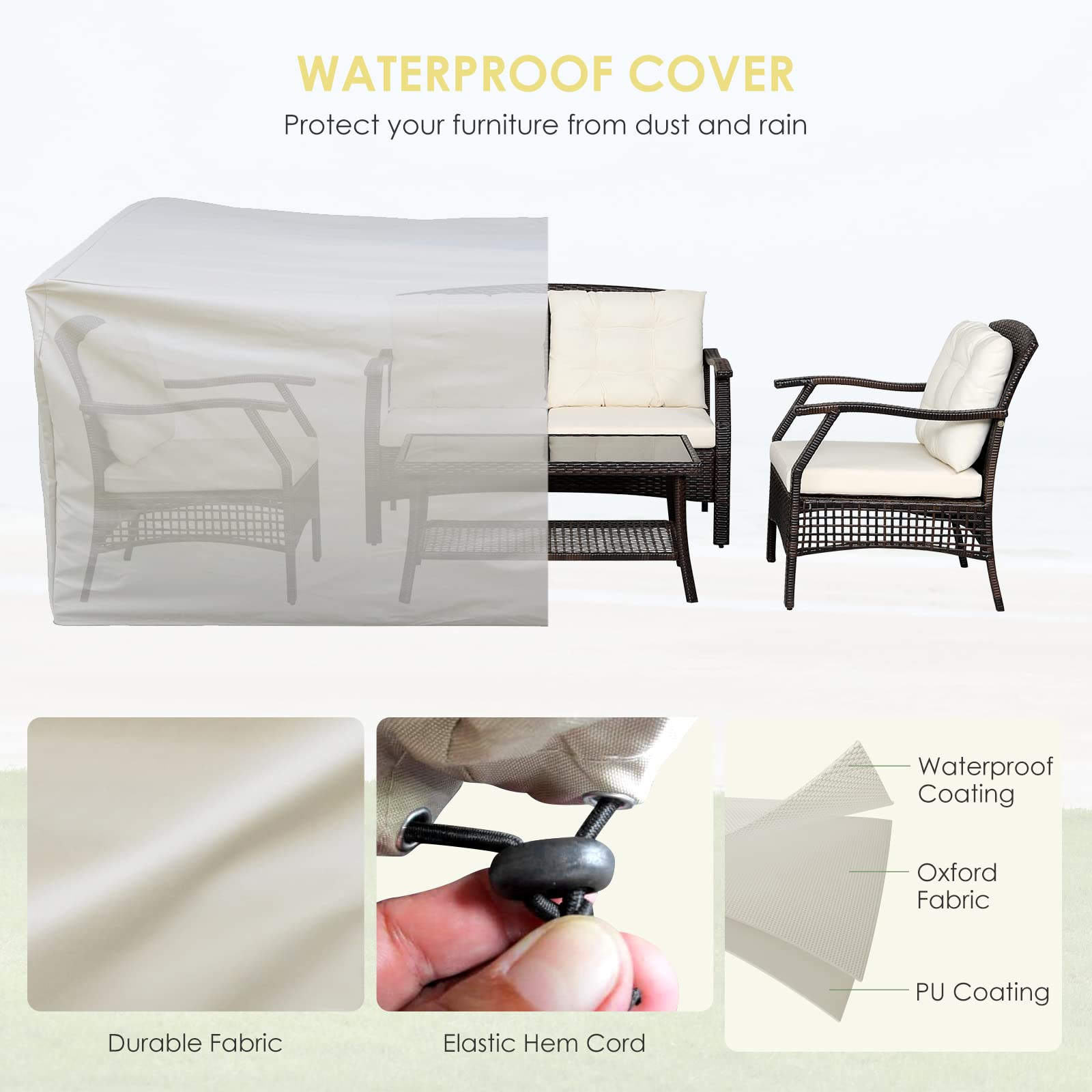 Durable & Weatherproof: The wicker material is resistant to rain, sun, and humidity, while the frame offers sturdy support, ensuring the set remains in excellent condition year after year.