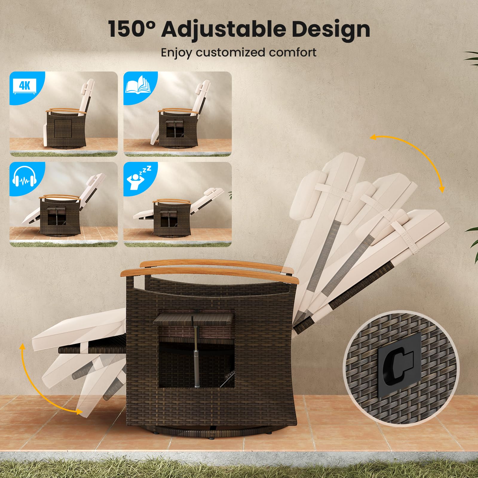 360-Degree Swivel: The Tangkula Patio Rattan Swivel Recliner Chair features a smooth 360-degree swivel function, allowing you to change your seating direction with ease and enjoy your outdoor surroundings from any angle.