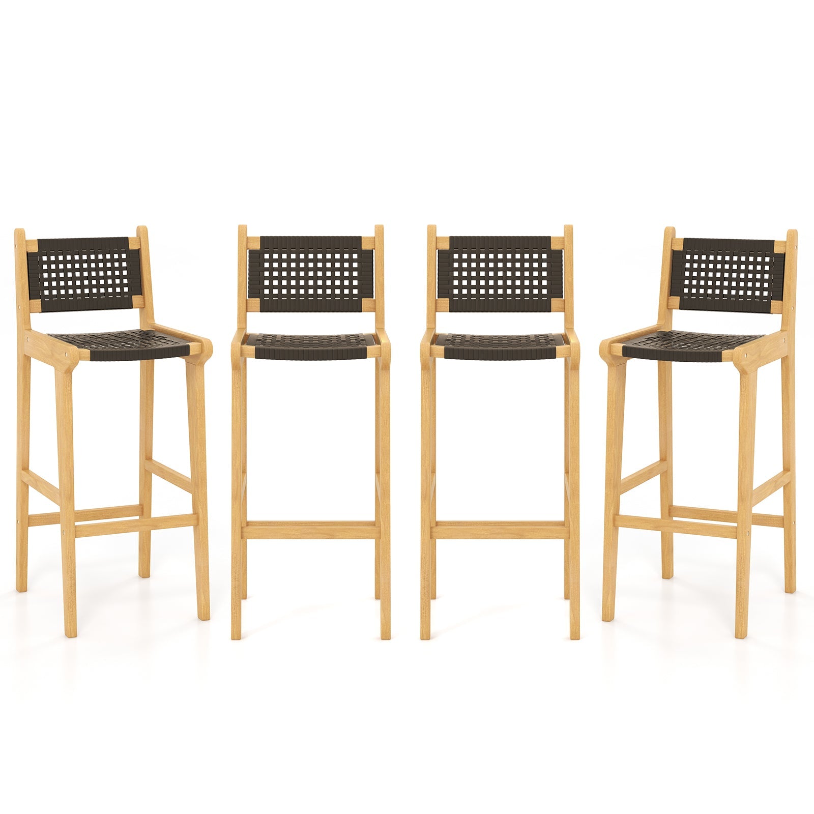 A: The set includes one 30-inch rattan bar stool with a backrest and footrest, made with teak wood and designed for comfortable bar or counter seating.