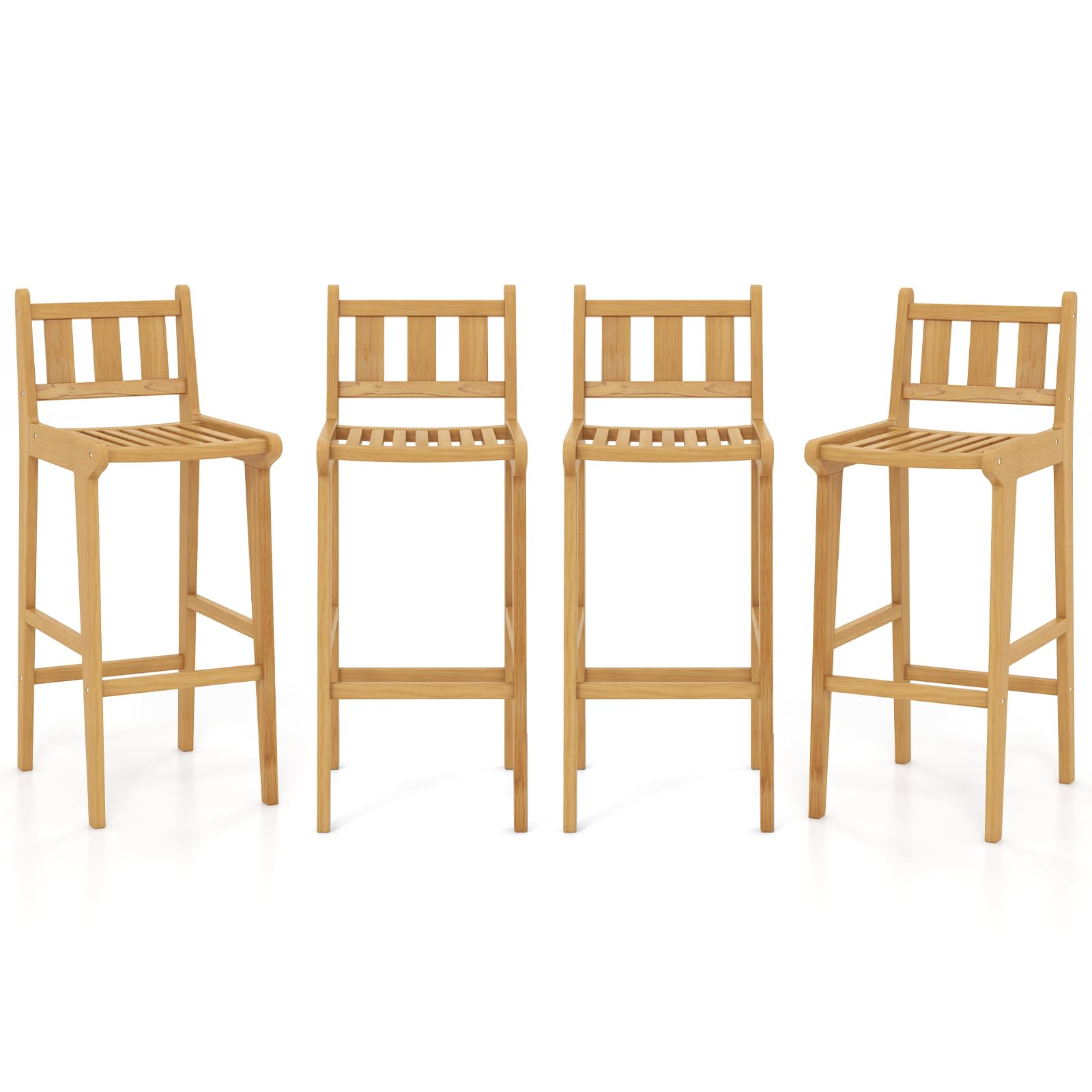 A: This set includes 4 bar stools, each featuring a 30-inch seat height, a sturdy footrest, and a supportive backrest for enhanced comfort.