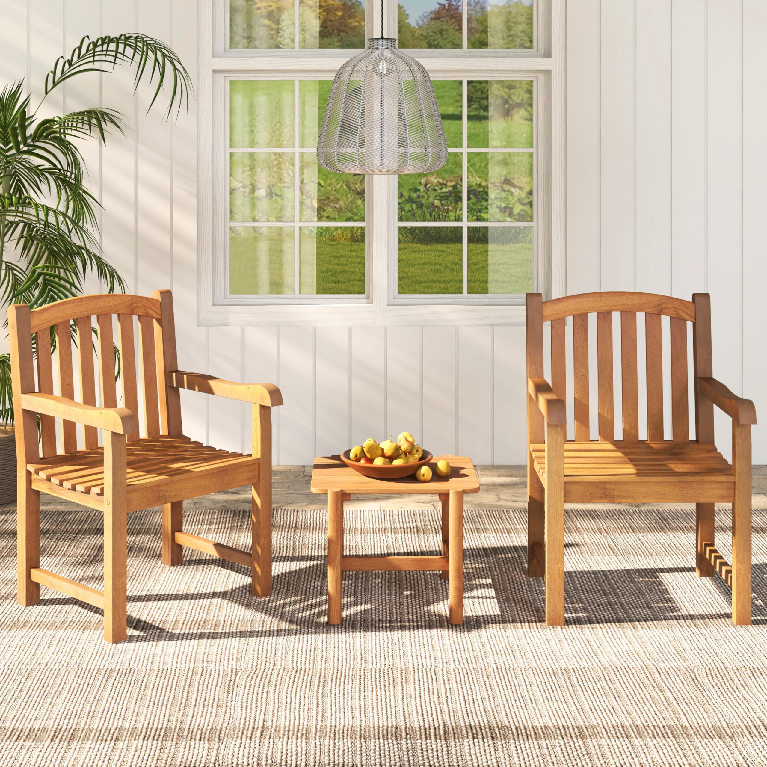 - Selected Teak Wood Material: Crafted with superior teak wood material, the patio chair provides strong support and a long-lasting lifespan. The chair bears a weight capacity of 330 lbs and stays sturdy on the ground.