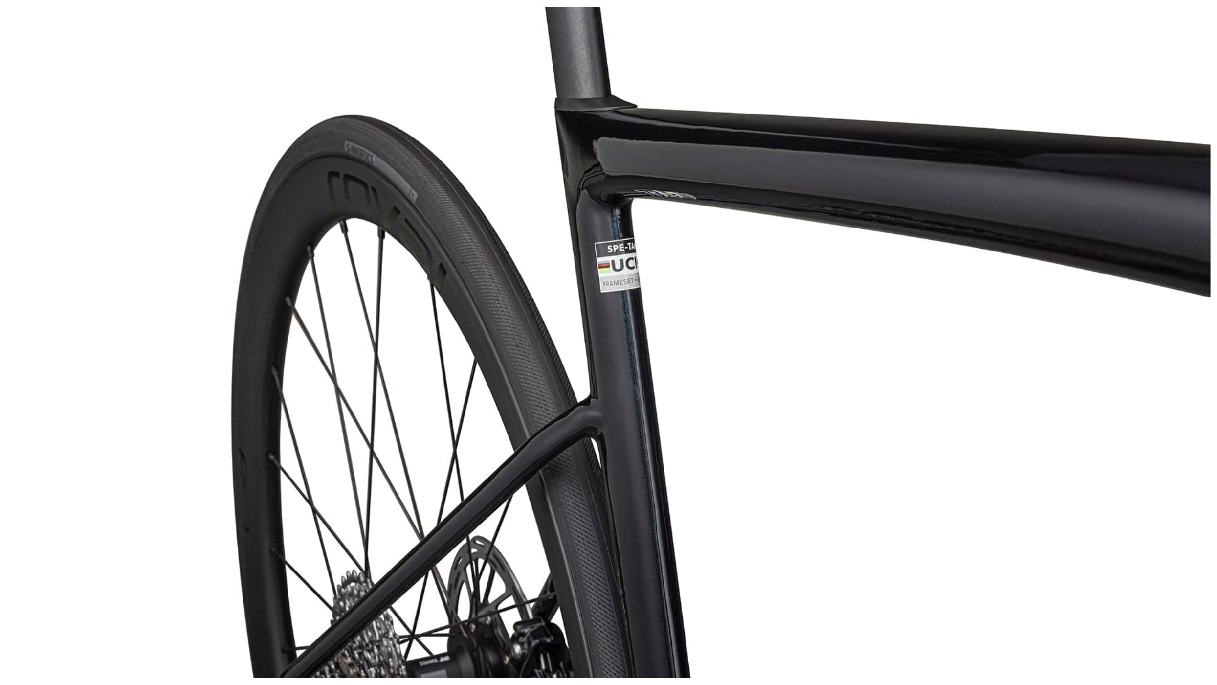 A: It includes Roval C38 wheels, S-Works carbon components, and an integrated cockpit to optimize aerodynamics and performance.