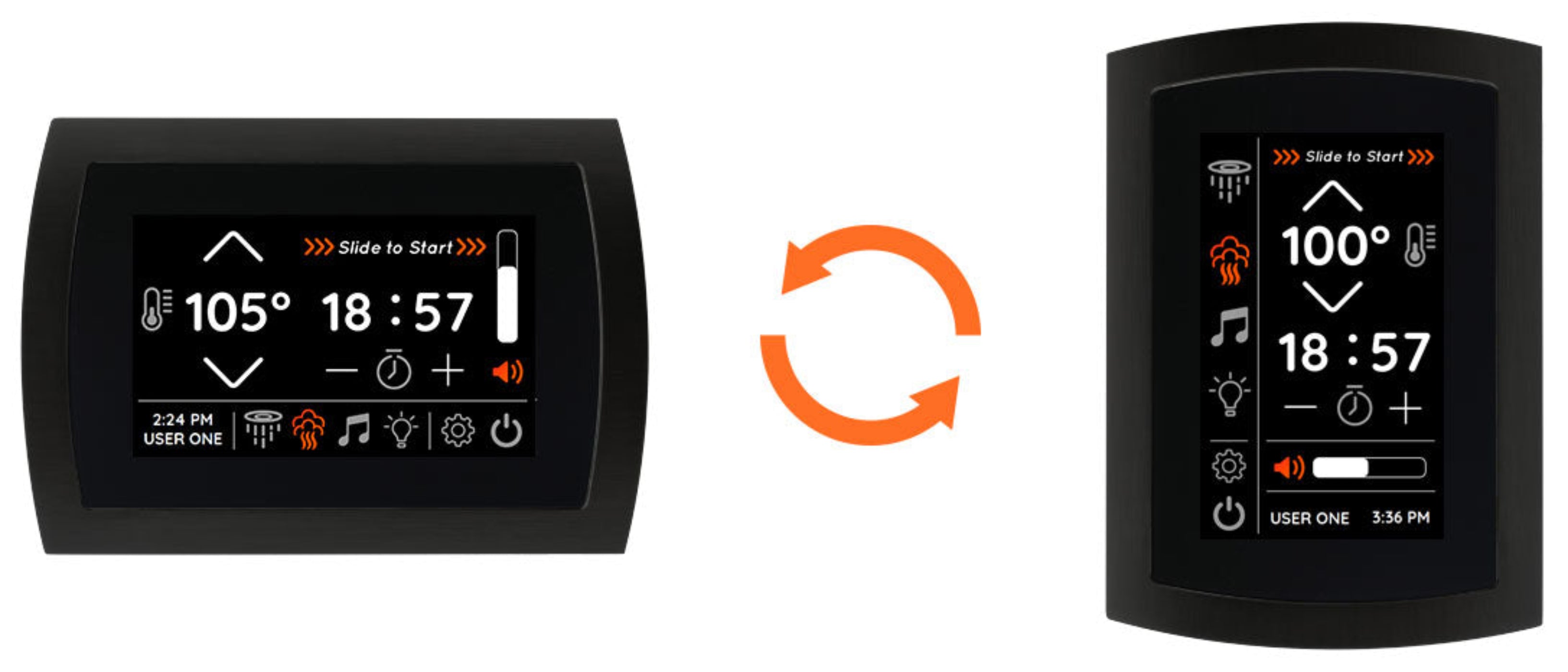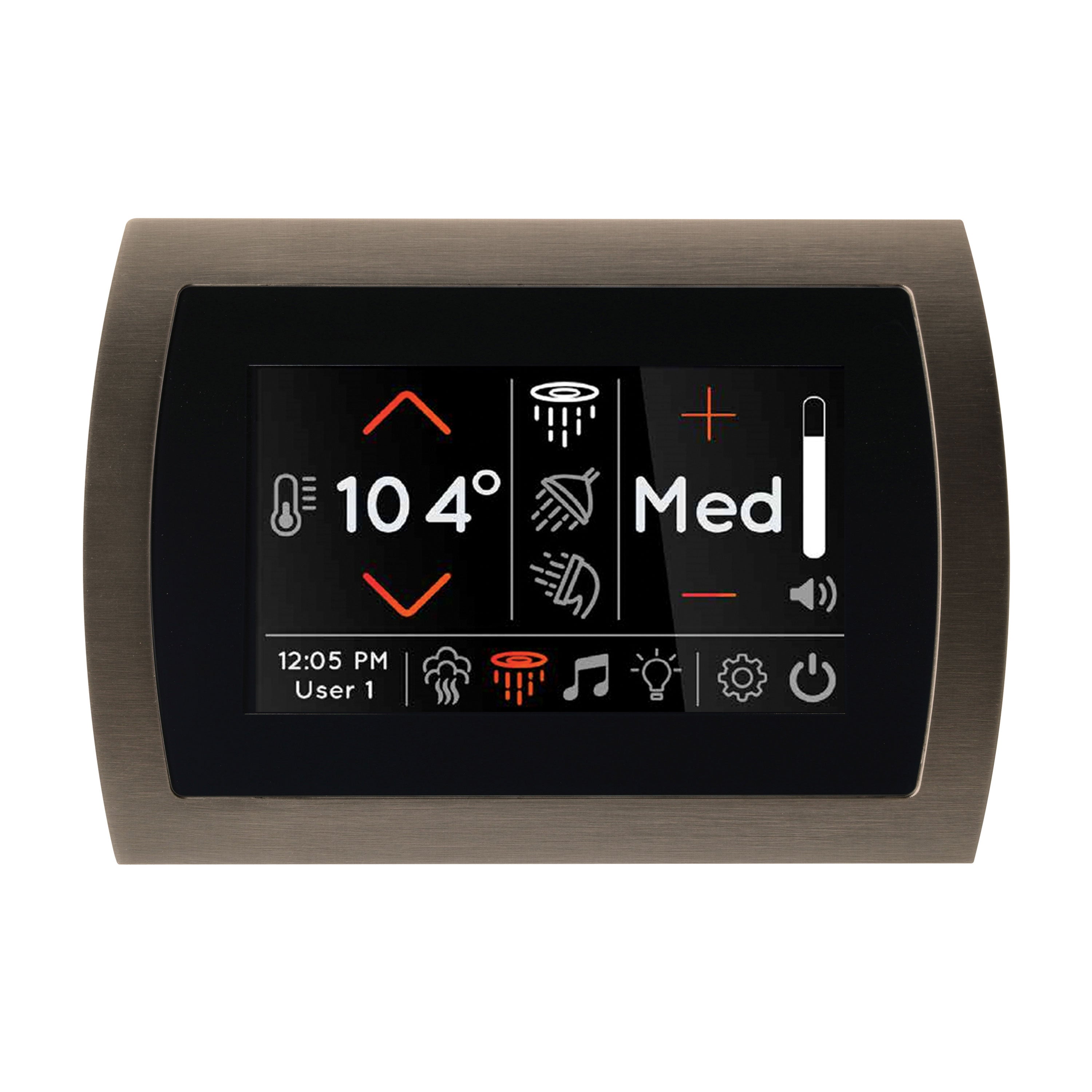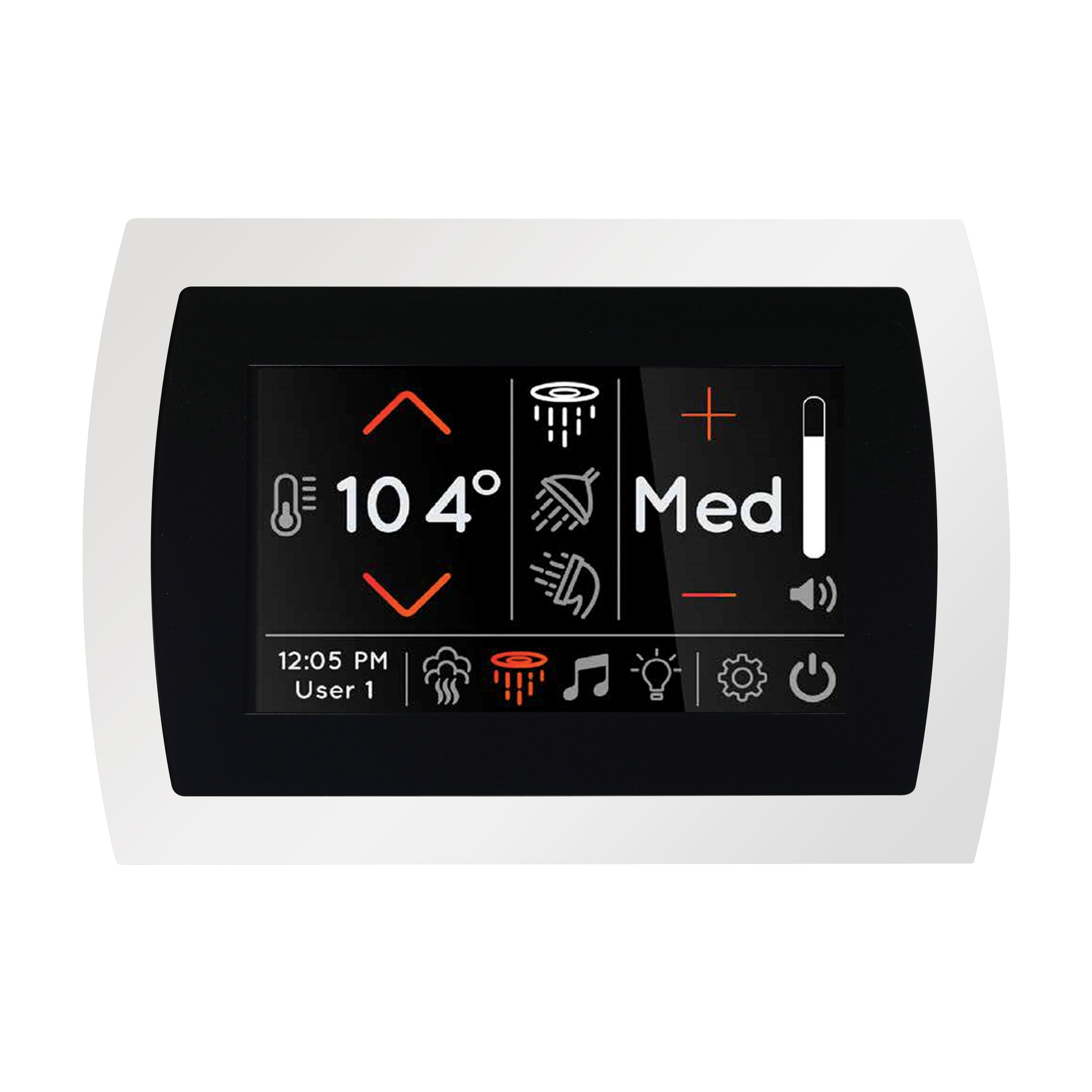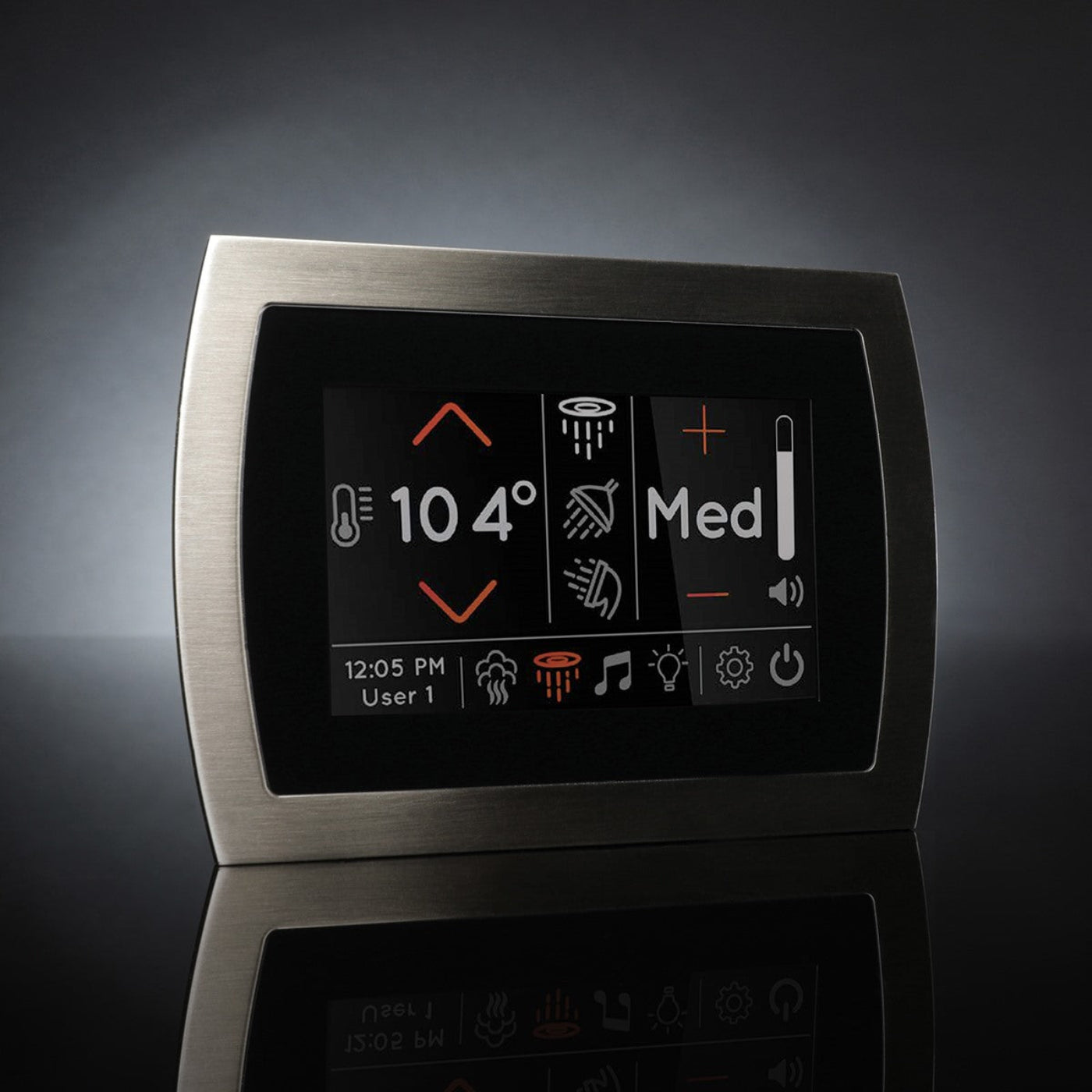 Available in a 5” LCD in-shower touchscreen, the streamlined SignaTouch In-Shower Control controls digital shower and steam functions, and can operate Serenity Light, Sound, Rainhead when installed.