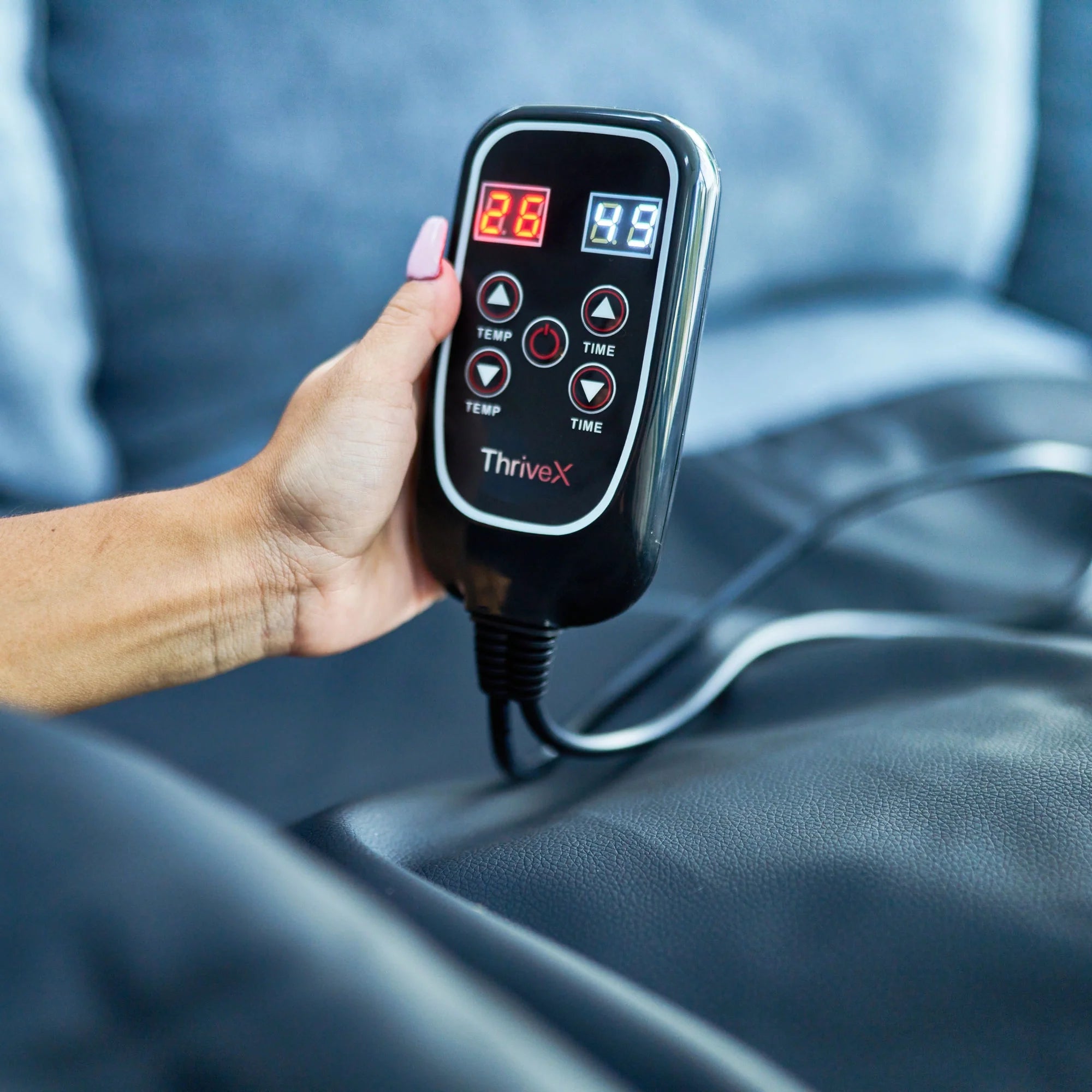 Introducing the Echelon ThriveX Sauna Blanket, your portable relaxation solution designed for ultimate convenience and comfort. Experience the deep, targeted heat of far-infrared technology, enhancing detoxification and taking relaxation to new levels. The efficient design features magnetic snap closures and durable stitching for optimal energy use and long-lasting performance. Maintenance is hassle-free, thanks to a waterproof inner lining that makes cleanup as simple as a quick wipe. With customizable temperature settings and a compact, portable design, you can unwind anywhere, anytime. Low EMF technology ensures safe and even heat distribution, providing a soothing and secure experience. Enjoy a holistic wellness boost in each session, offering detox, calorie burn, stress relief, pain alleviation, and skin rejuvenation, leaving you refreshed and fully relaxed.