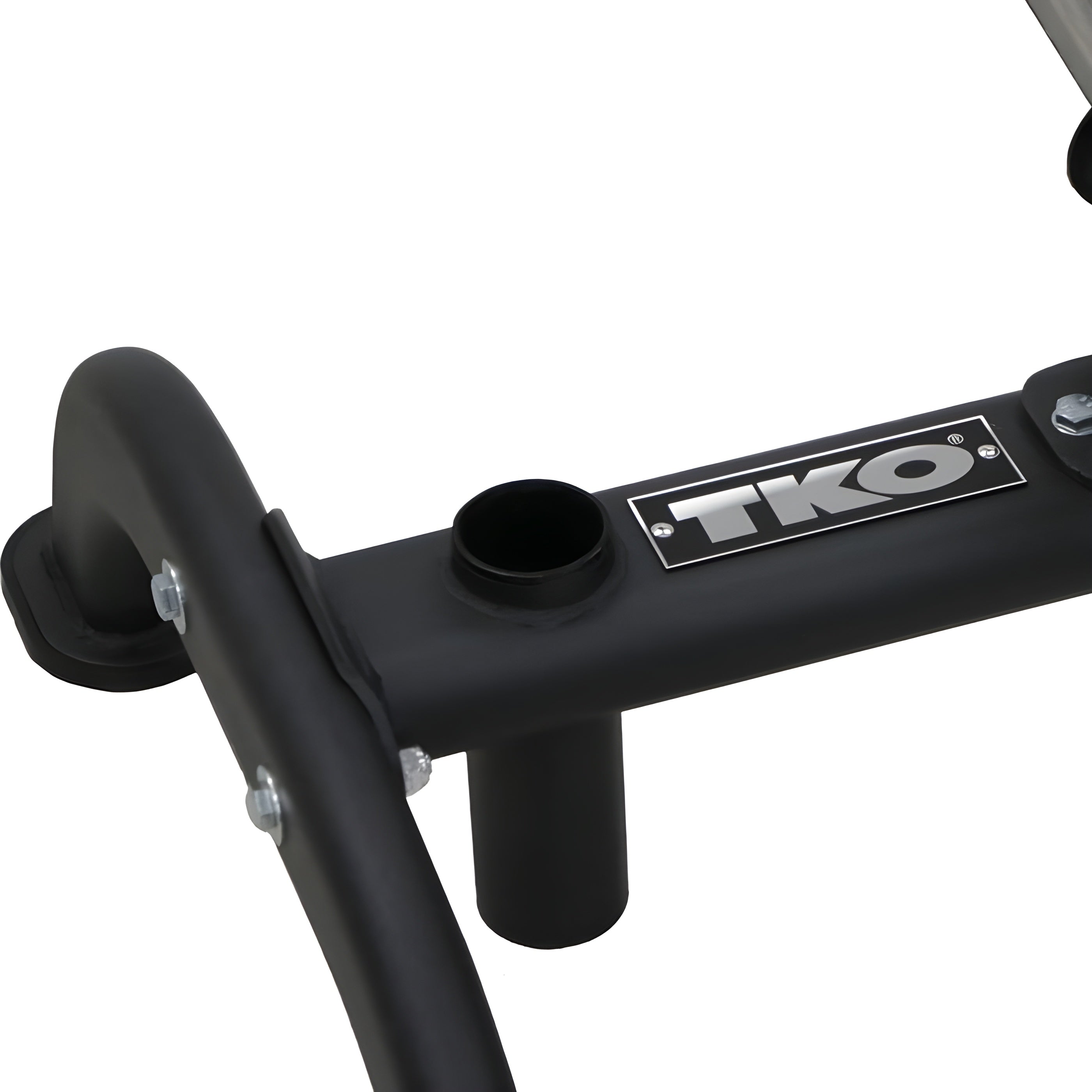 TKO's Olympic Weight Plate Tree with Bar Holders is constructed of an all-welded steel frame with stainless steel plate horns that hold up to a total of 600 lbs. of Olympic Plate.