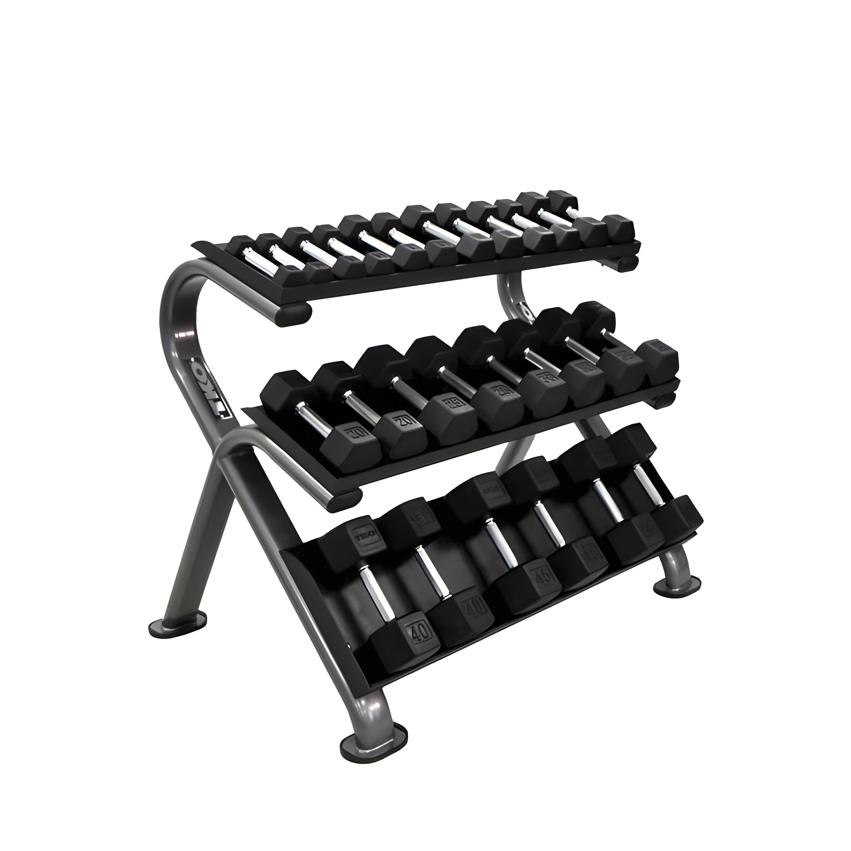 Built tough, this 3-tier rack can hold up to 15 pairs of dumbbells while maintaining its structural integrity for years.