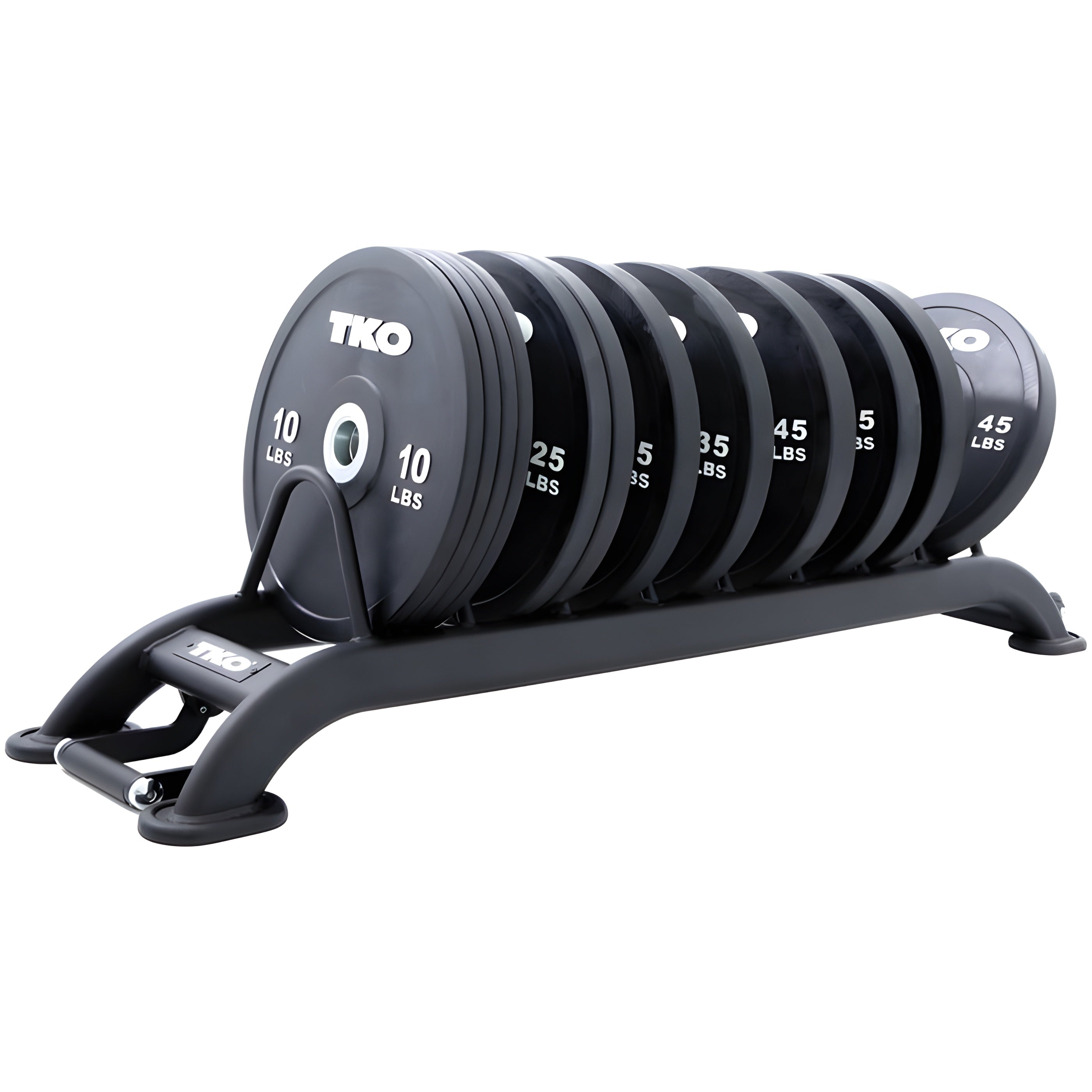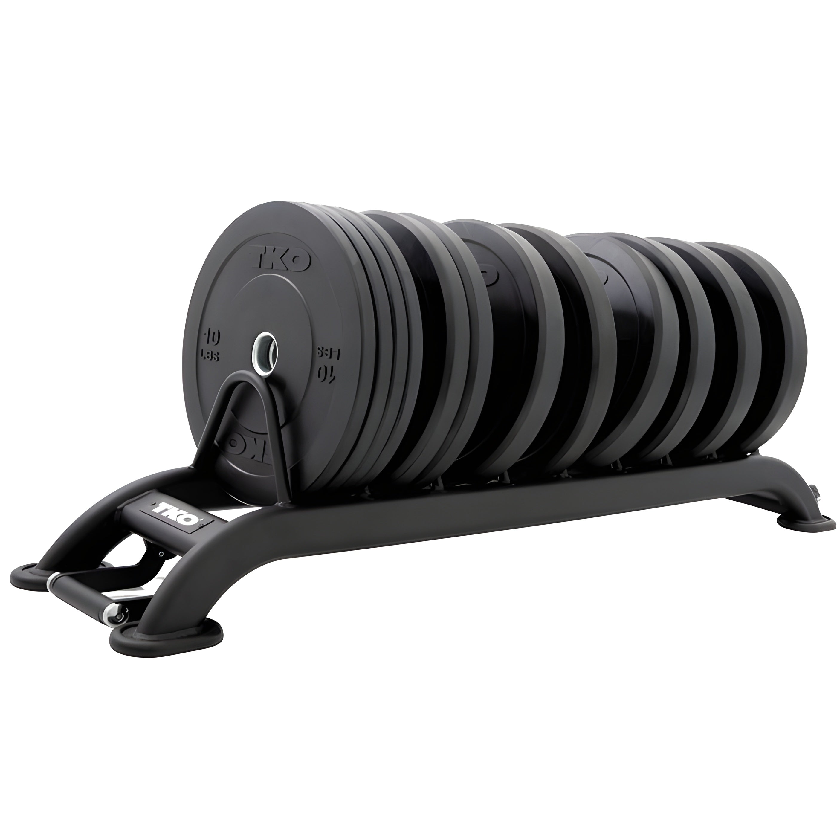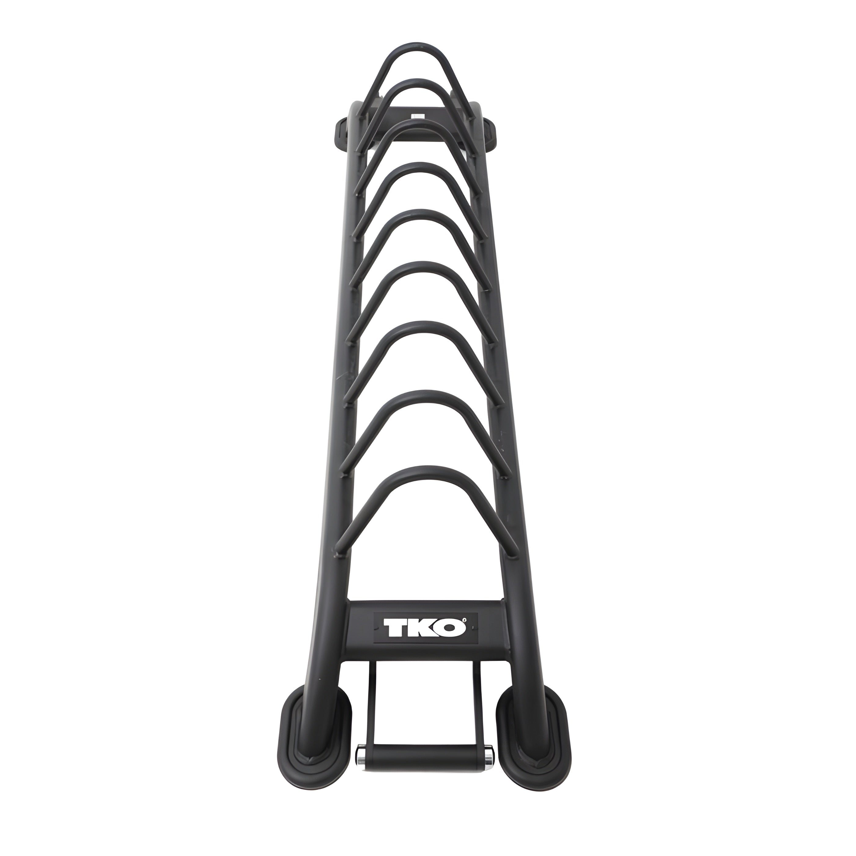 TKO's Bumper Plate Rack offers a great way to keep your fitness equipment clean and organized. This durable rack includes (8) slots to accommodate rubber bumper and Olympic weight plates. A built-in swivel handle and durable wheels allow for easy transportation and mobility.