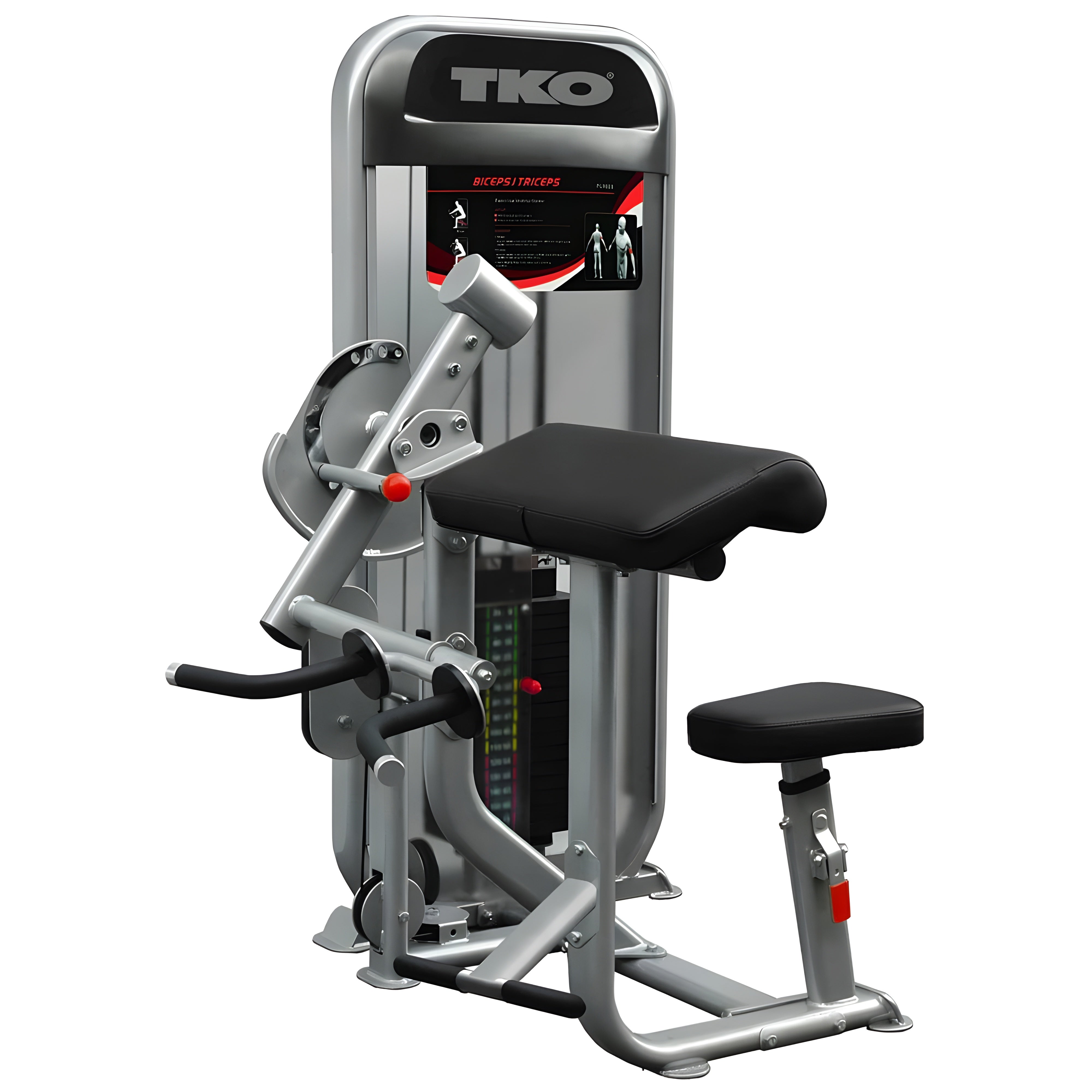 The TKO Dual Bicep and Tricep machine is built with heavy gauge, oval steel tubing that features a graphite colored finish for protection against ware, tear, moisture, scratches, and nicks.