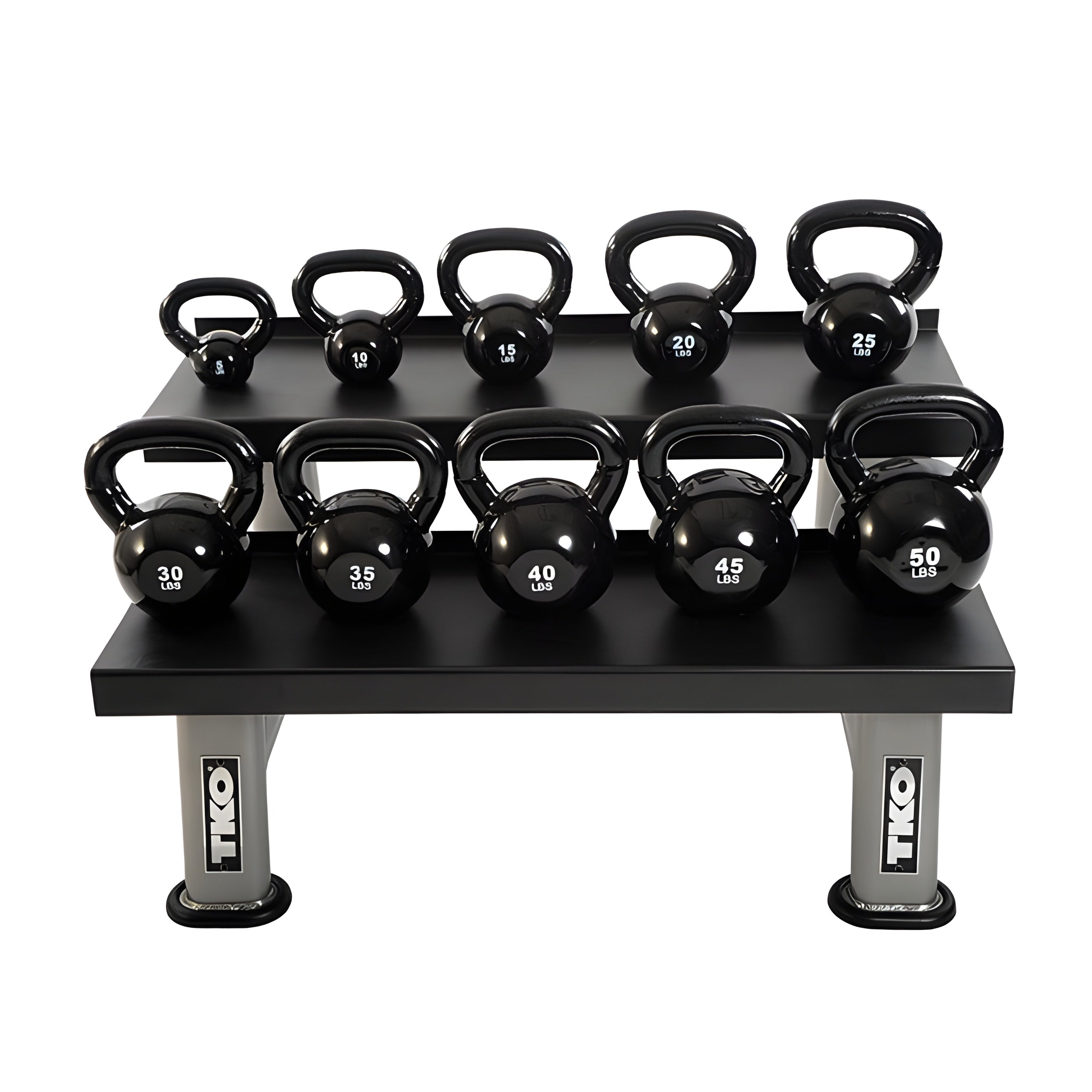Kettlebells are an important part of any gym, but when left around the floor, they can become a serious hazard. You can keep your gym clean and your kettlebells in line by investing in the attractive and functional TKO Kettlebell Rack.