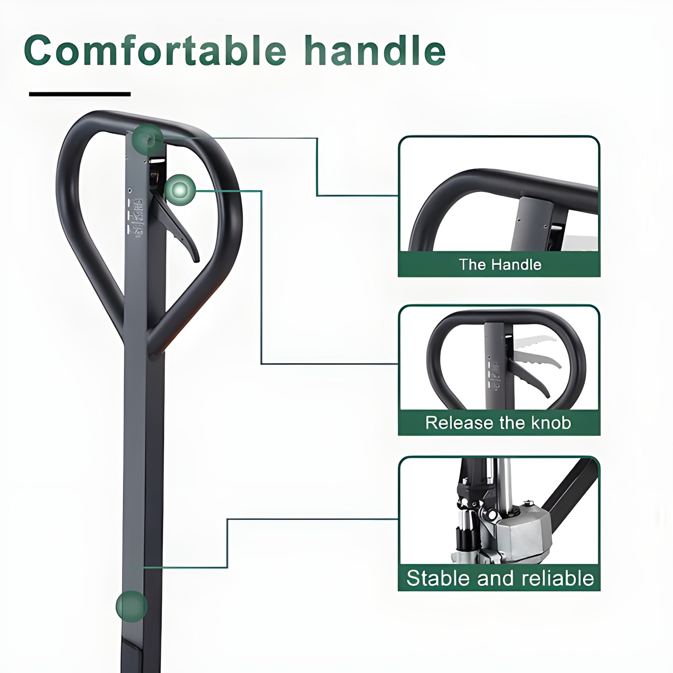 Tory Carrier Hand Pallet Jack is ideal designed with numerous possibilities makes truck very suitable as pallet truck and scissor lift table. Manufactured partly of stainless steel or other corrosion resistant materials, this 2200 lbs hand pallet truck is engineered for reliability and long life in these tough work conditions.