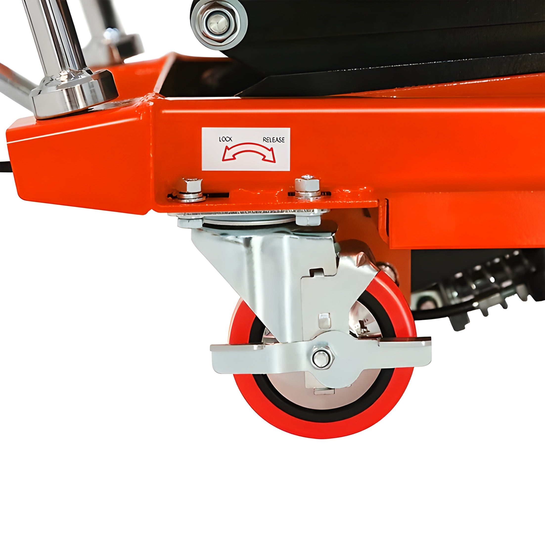 The Tory Carrier Double Scissor Lift Table includes lifting design with manual hydraulic table pump to boom up and down. This lift table lift and lower loads. Handle plate provides protection from falling down, which makes it safe.