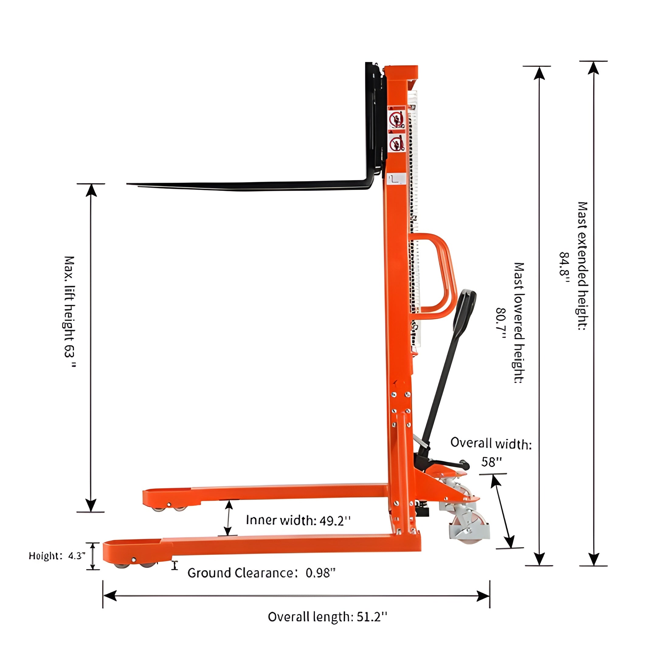 63" Lifting Height – Provides excellent reach for stacking and organizing materials efficiently.