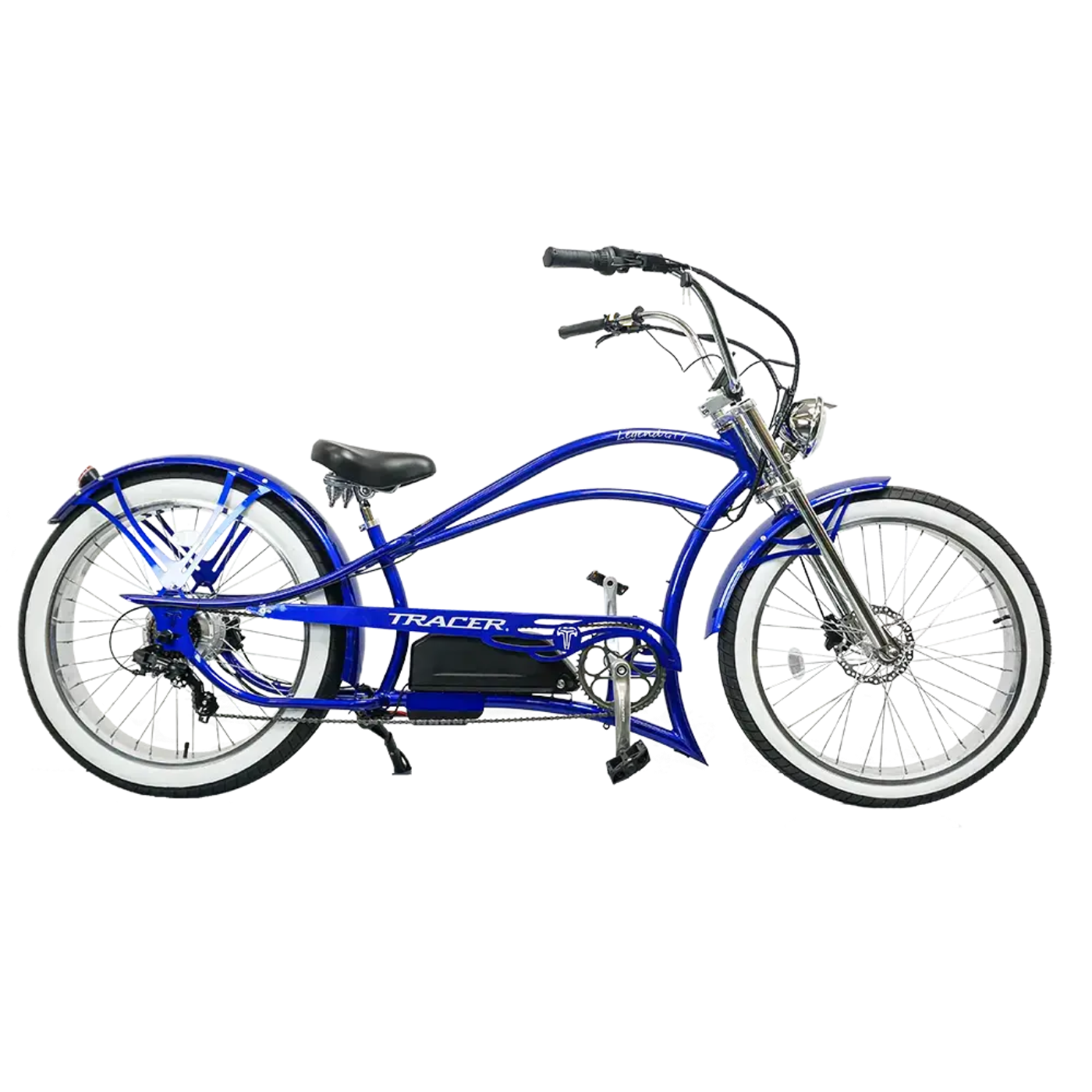 Introducing the Tracer Legend GT7, a powerful electric bike that merges the iconic chopper style with modern e-bike technology. Designed for those who appreciate a bold and distinctive look, the Legend GT7 offers a riding experience that is both thrilling and comfortable, making it perfect for city streets and open roads alike.