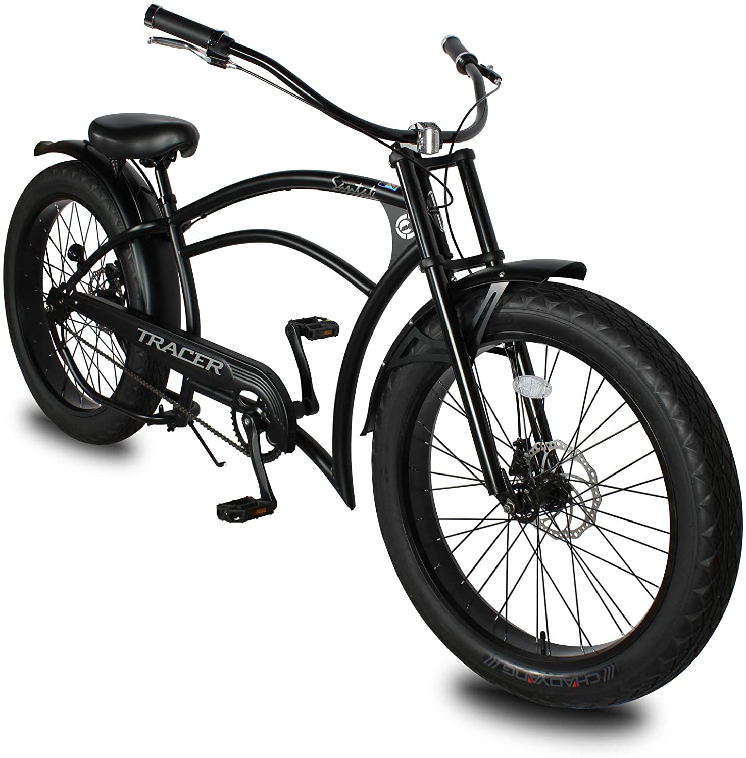 The Tracer Santak GT 26" Chopper Stretch Cruiser Fat Tire Bike Single Speed is a stylish and eye-catching bicycle designed for riders who crave a unique and comfortable cycling experience. With its distinctive chopper-style frame and oversized fat tires, this bike is both a head-turner and a smooth-riding machine. Here are some key features that make the Tracer Santak GT stand out: