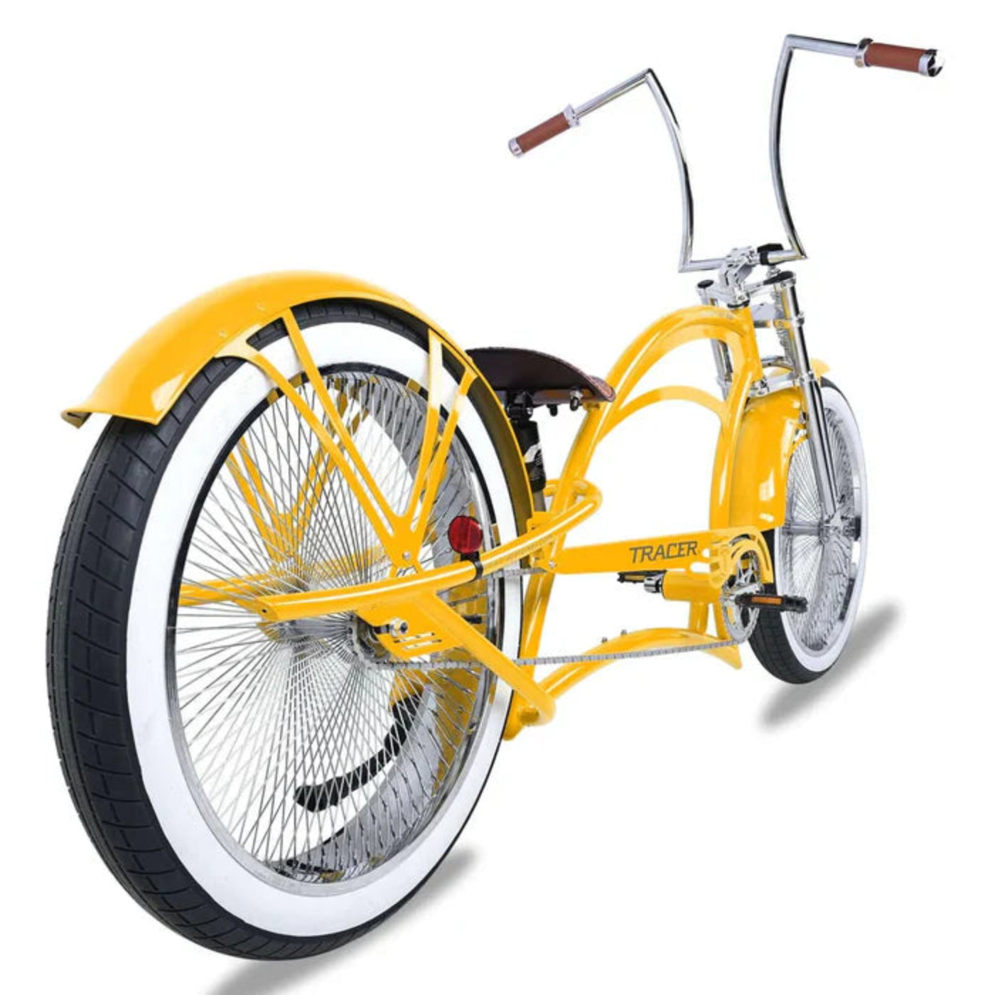 Bold, Eye-Catching Design: The Tracer 26" Scorpion Pro DTS features a stretched chopper-style frame that makes a serious statement on the road. With its lowrider aesthetic and elongated profile, it’s built for riders who love turning heads.
