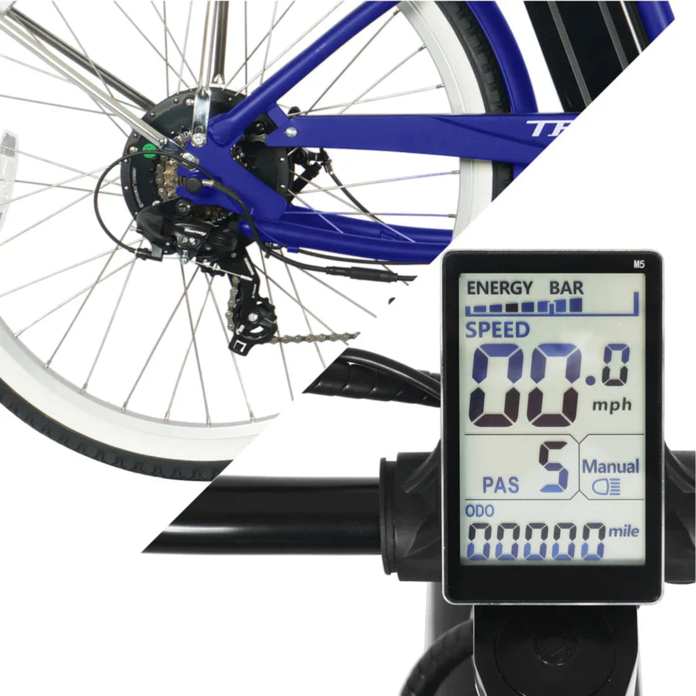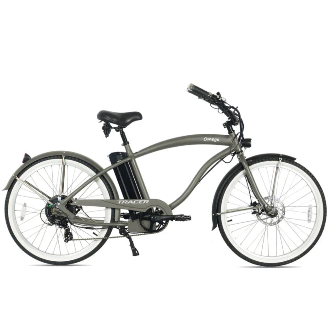 Q: What is the Tracer 500W 26" Omega Men's Beach Cruiser Electric Bike?