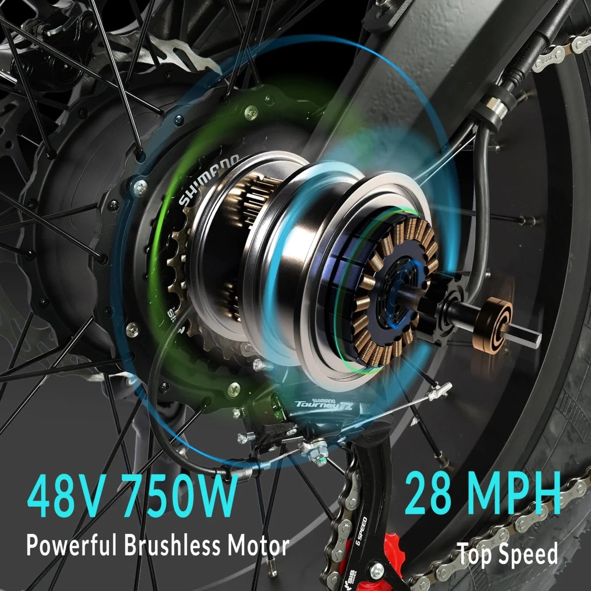 Rear Hub Motor | 48V, 750W High-Speed Brushless, Max Speed 28 mph |
