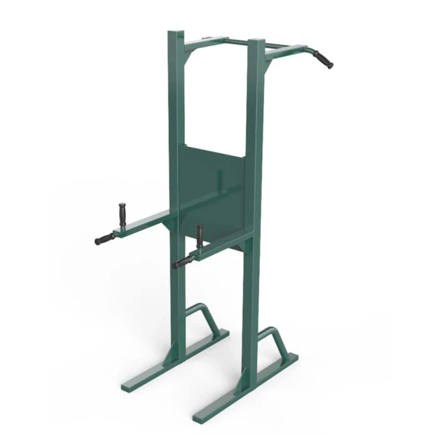 A: It is a durable, multi-functional fitness station designed for performing pull-ups, dips, and other upper body exercises to build strength and muscle.