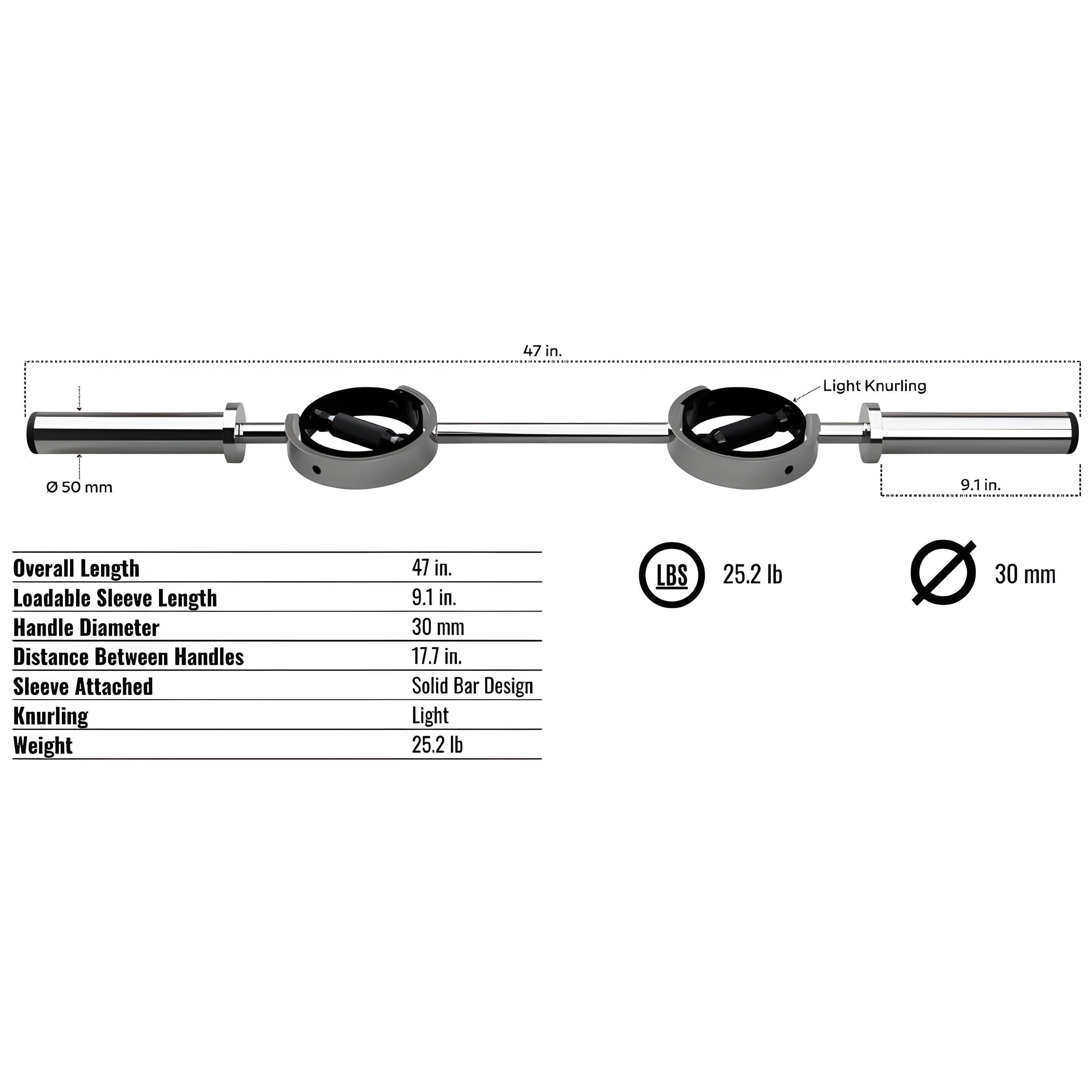 UPGRADE YOUR ARM TRAINING! Invest in the Troy SBCB-47 Supra 47" Olympic Curl Bar to optimize your bicep and forearm workouts. Designed for lifters of all levels, this Olympic curl bar ensures effective, joint-friendly training. Add this Troy bar to your fitness arsenal today and experience the difference in your upper body strength