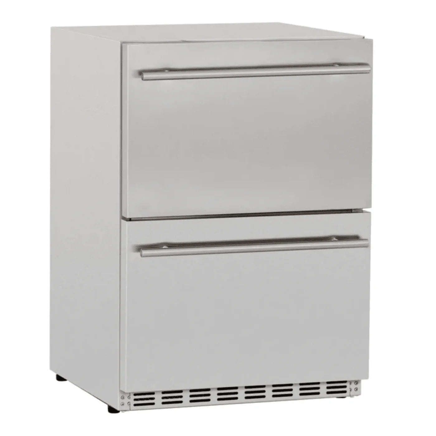 A: The TrueFlame TF-RFR-24DR2-A is an outdoor-rated, 24-inch fridge featuring a sleek drawer design. It’s built for durability and efficiency, making it ideal for outdoor kitchens, patios, or grilling areas.