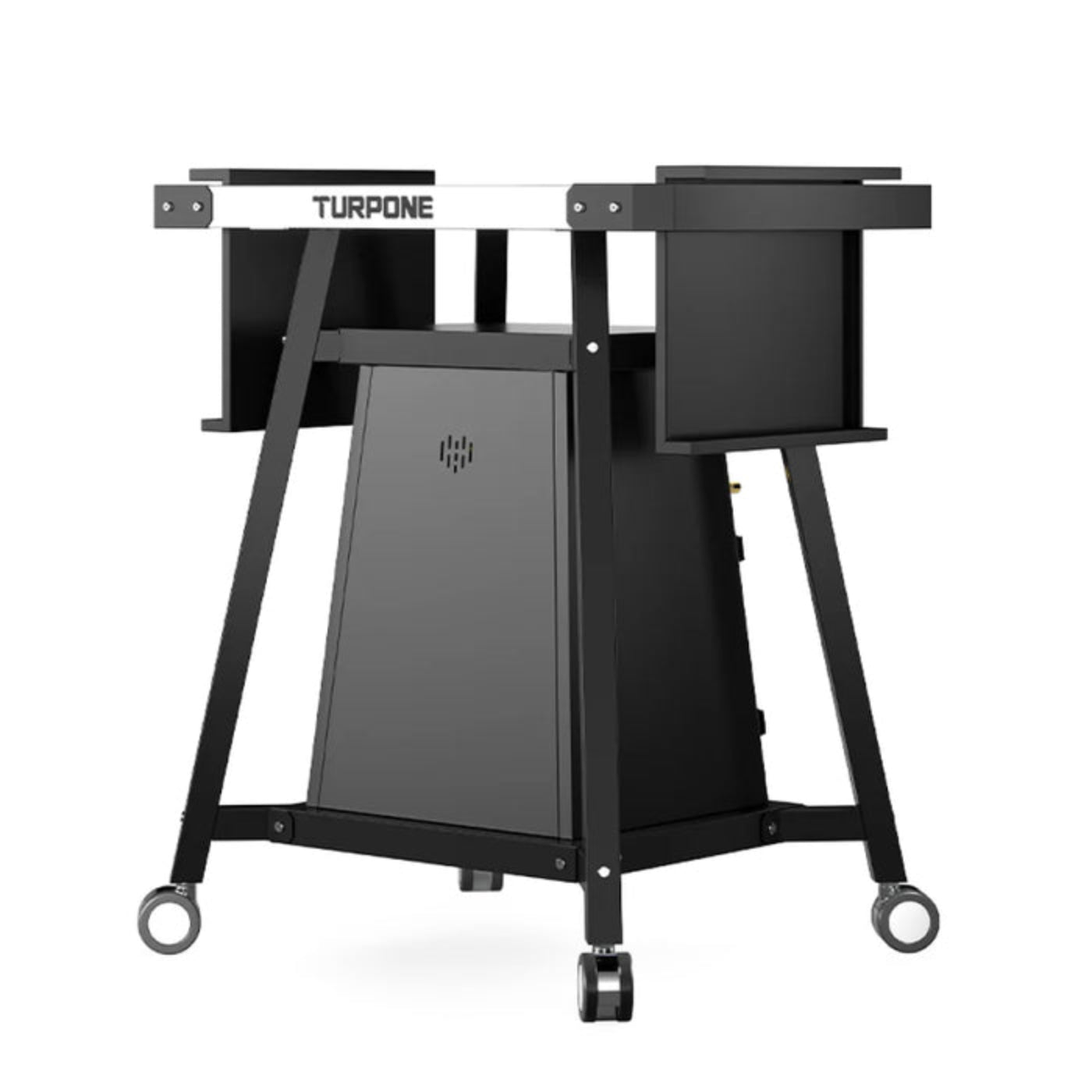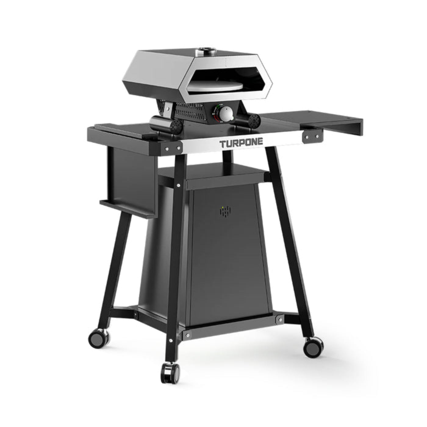 Introducing the Turpone Forza, a high-performance propane pizza oven in a class of its own thanks to a proprietary rotating ceramic stone, a first in the industry. With its powerful heating capabilities, the Forza can reach temperatures of up to 1000 degrees Fahrenheit, allowing you to make pizzas and many other foods with ease. This bundle features the Forza Propane Pizza Oven, Turpone Black Pizza Oven Table, a 17" pizza peel, and a Forza cover bag for the pizza oven. The table offers a spacious middle surface and two side tables for all your pizza preparation needs. The removable shelves provide flexibility, allowing you to easily adjust the setup when space is tight or when you prefer to let them hang down. A concealed compartment with a door neatly houses the propane tank, keeping your setup clean and organized.