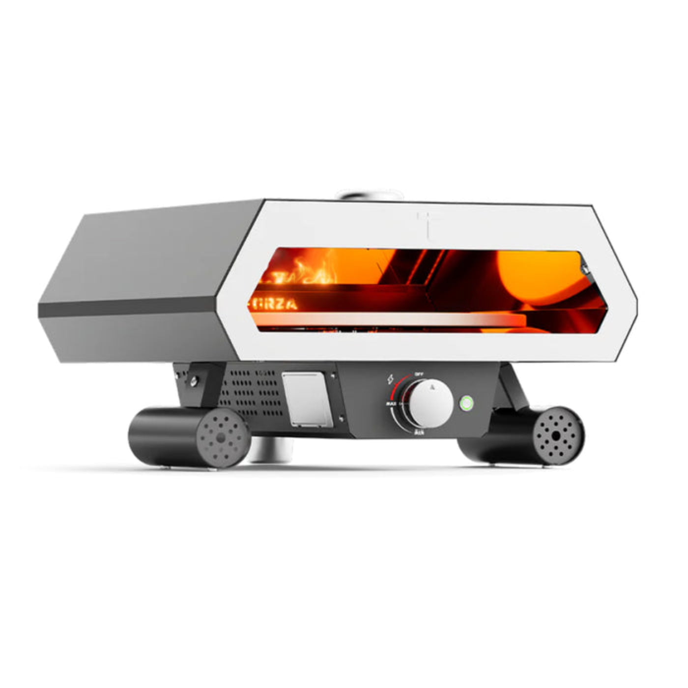 This portable pizza oven fits pizzas up to 17 inches. It comes with a 17-inch rotating cordierite baking stone that is powered by 6 AAA batteries alongside a 17-inch pizza peel. The Forza heat is provided by a straight tube burner with a built-in fire plate to protect food from burning. The Forza can go up to 1000°F (537.77°C) in just 10 minutes maximum allowing you to cook pizza at any temperature. The portable pizza oven is easy to clean and perfect for camping or picnics when you want an Italian dinner.