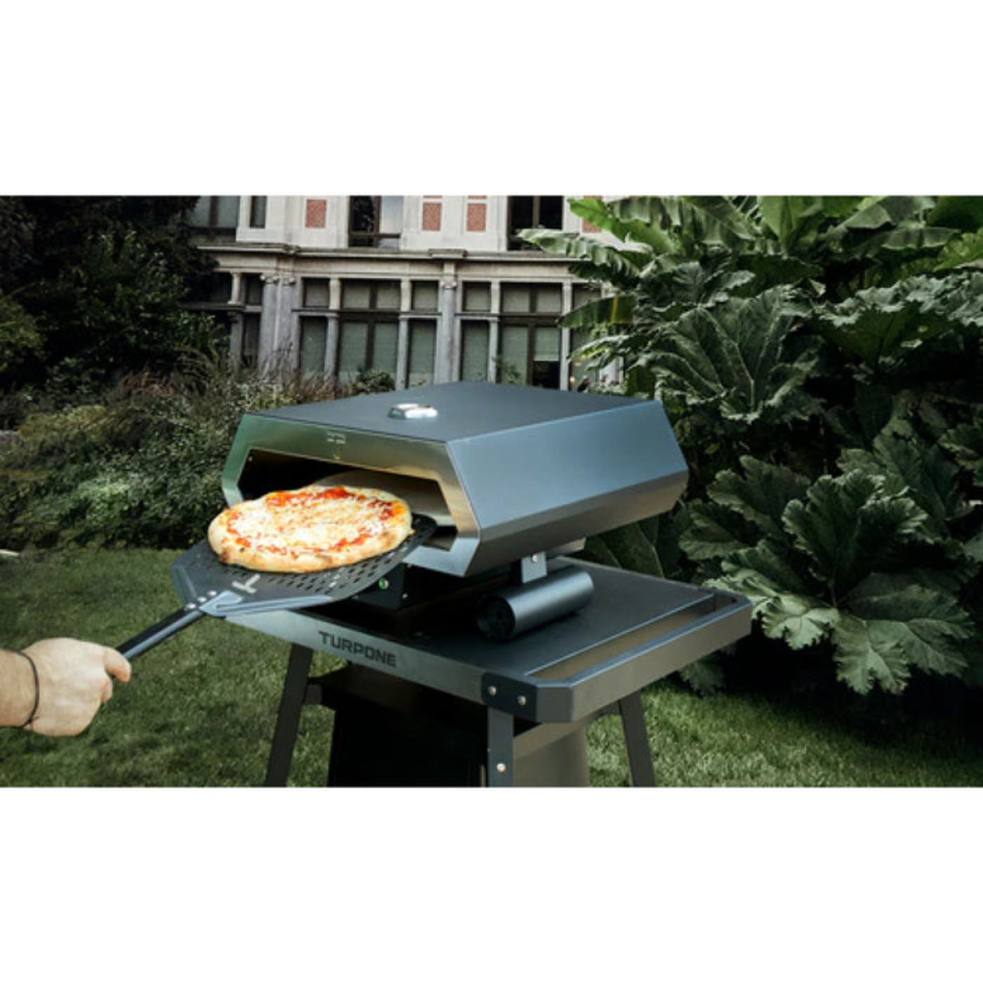 A: The Turpone Forza 17" Rotating Pizza Oven is a high-performance gas pizza oven with a rotating stone, ensuring even cooking for restaurant-quality pizzas at home.