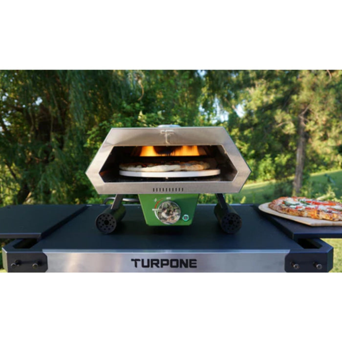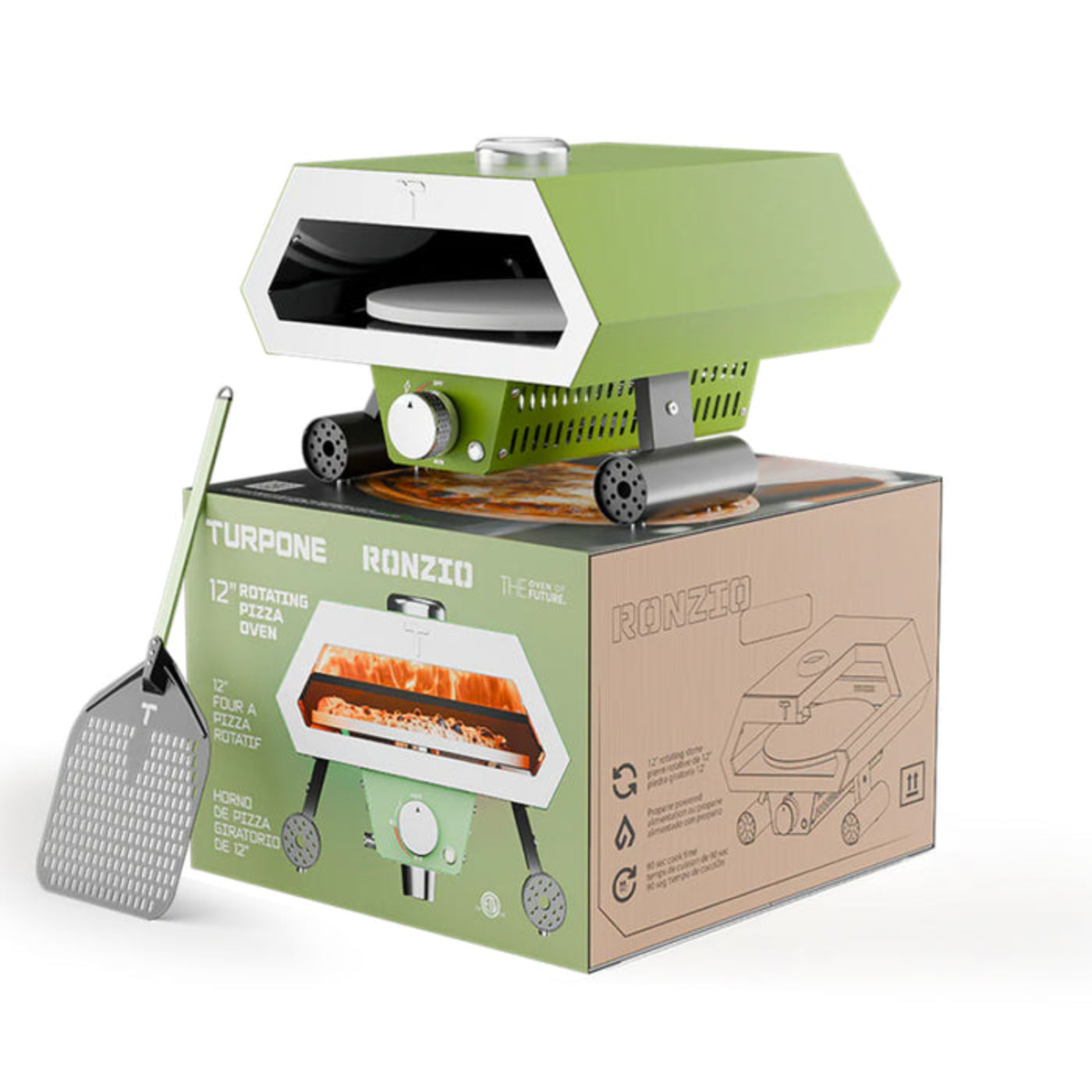 A: The Turpone Ronzio 12" is a compact, gas-powered pizza oven featuring a rotating pizza stone for even cooking and a crispy crust every time.