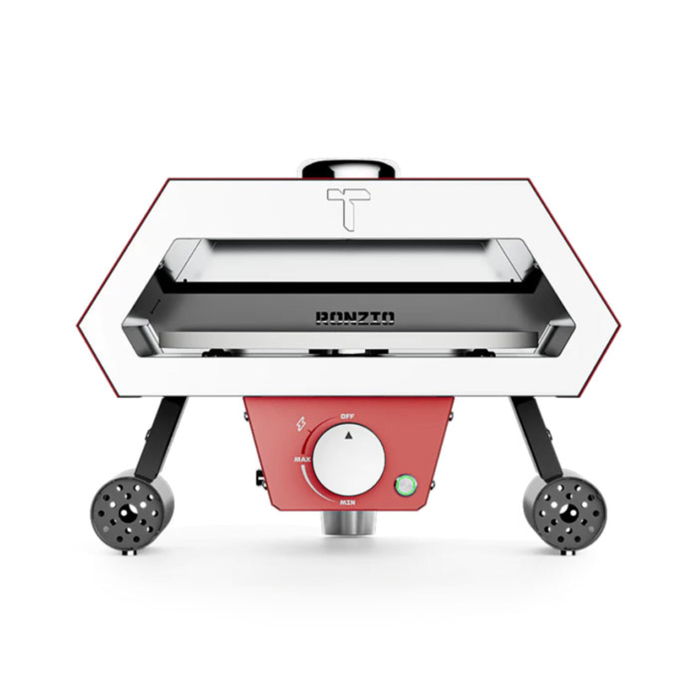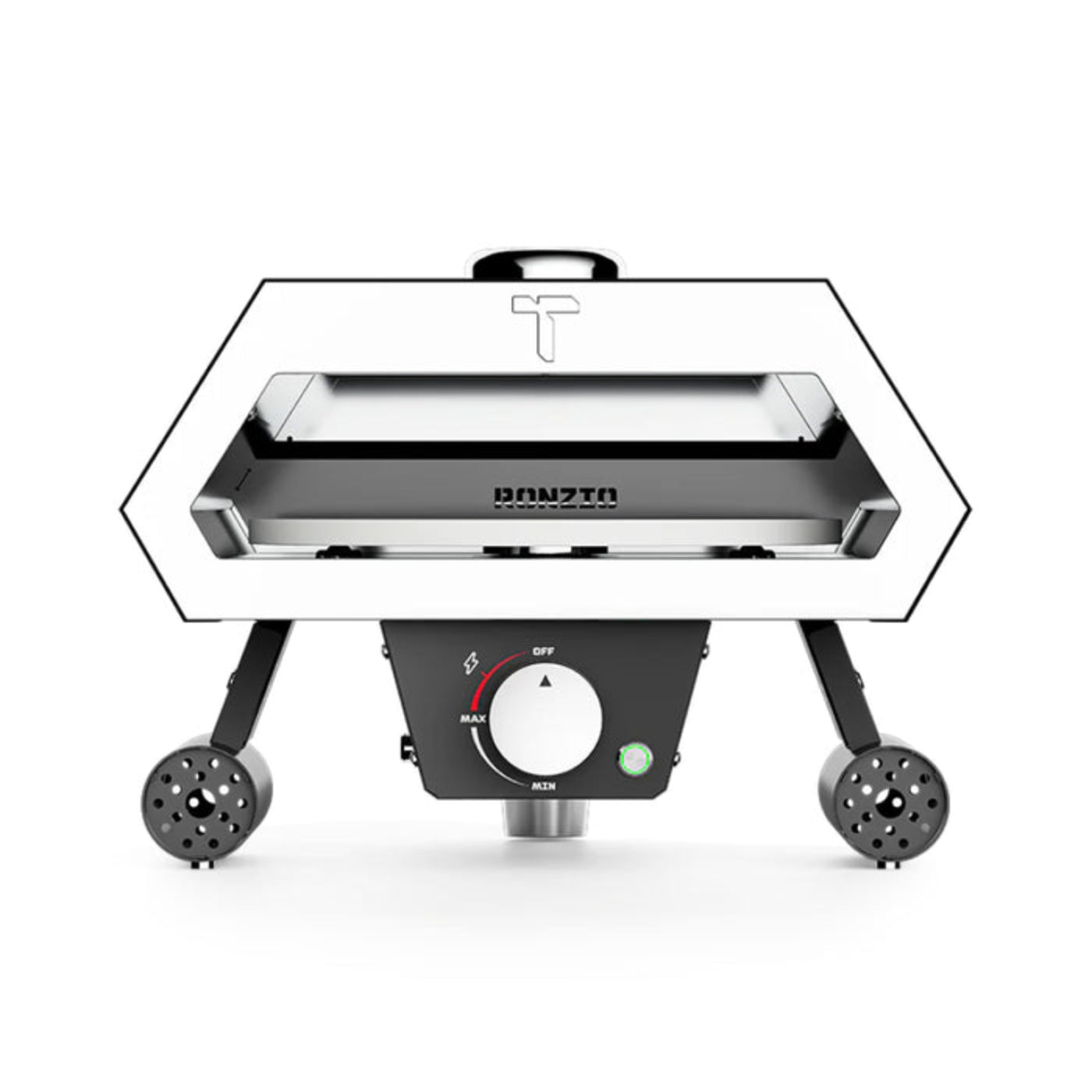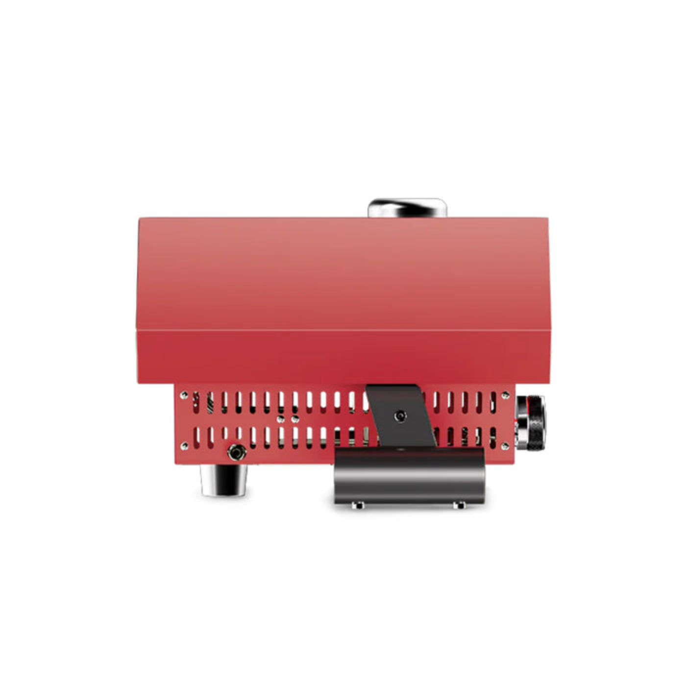 This portable pizza oven fits pizzas up to 12 inches. It comes with a 12-inch rotating cordierite baking stone that is powered by 4 x AAA batteries alongside a 12-inch pizza peel. The Ronzio heat is provided by a straight tube burner with a built-in fire plate to protect food from burning. Ronzio can go up to 950°F (510°C) in just 10 minutes maximum allowing you to cook pizza at any temperature. The portable pizza oven is easy to clean and it only weighs 20 lbs perfect for camping or picnics when you want an Italian dinner.