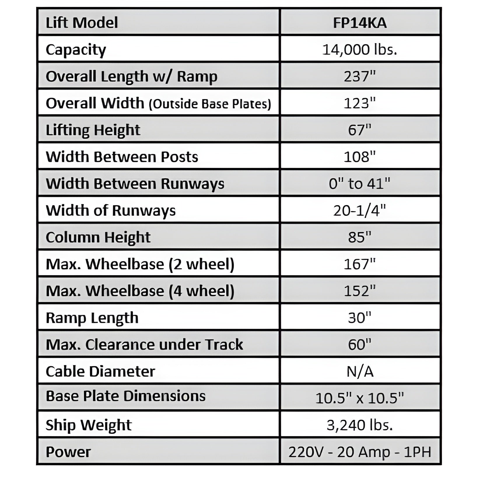Capacity | 14000 lbs |