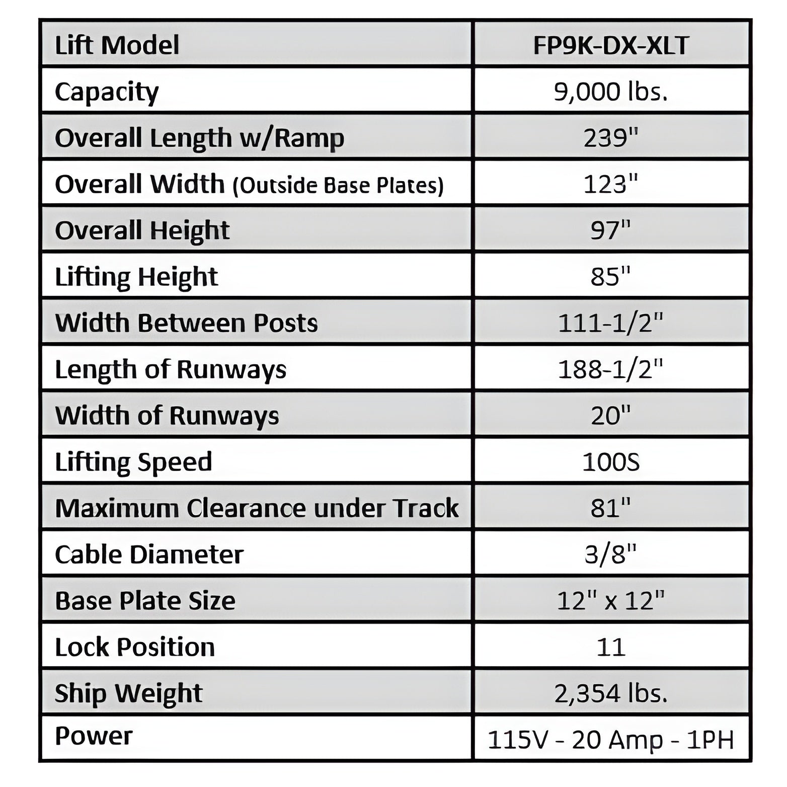 Lift Model | FP9K-DX-XLT |