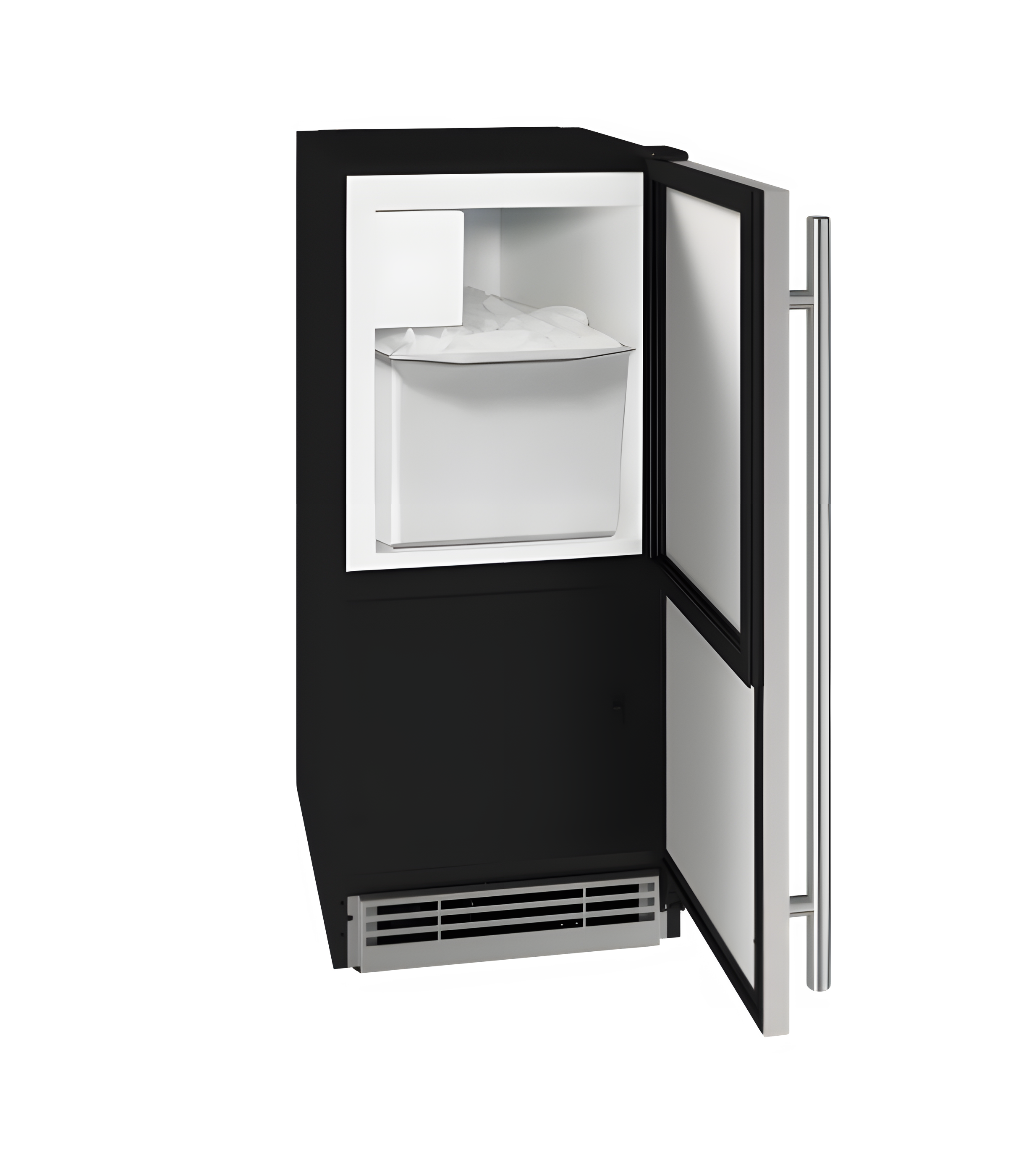 The U-Line 15 1 Class Crescent Ice Maker offers exceptional performance, producing up to 25 lbs. of ice per day and storing up to 25 lbs. of ice. This versatile ice maker is available in black, white, stainless steel, or integrated door finishes, allowing it to seamlessly blend with your cabinetry. With no drain required, installation is straightforward and hassle-free.
