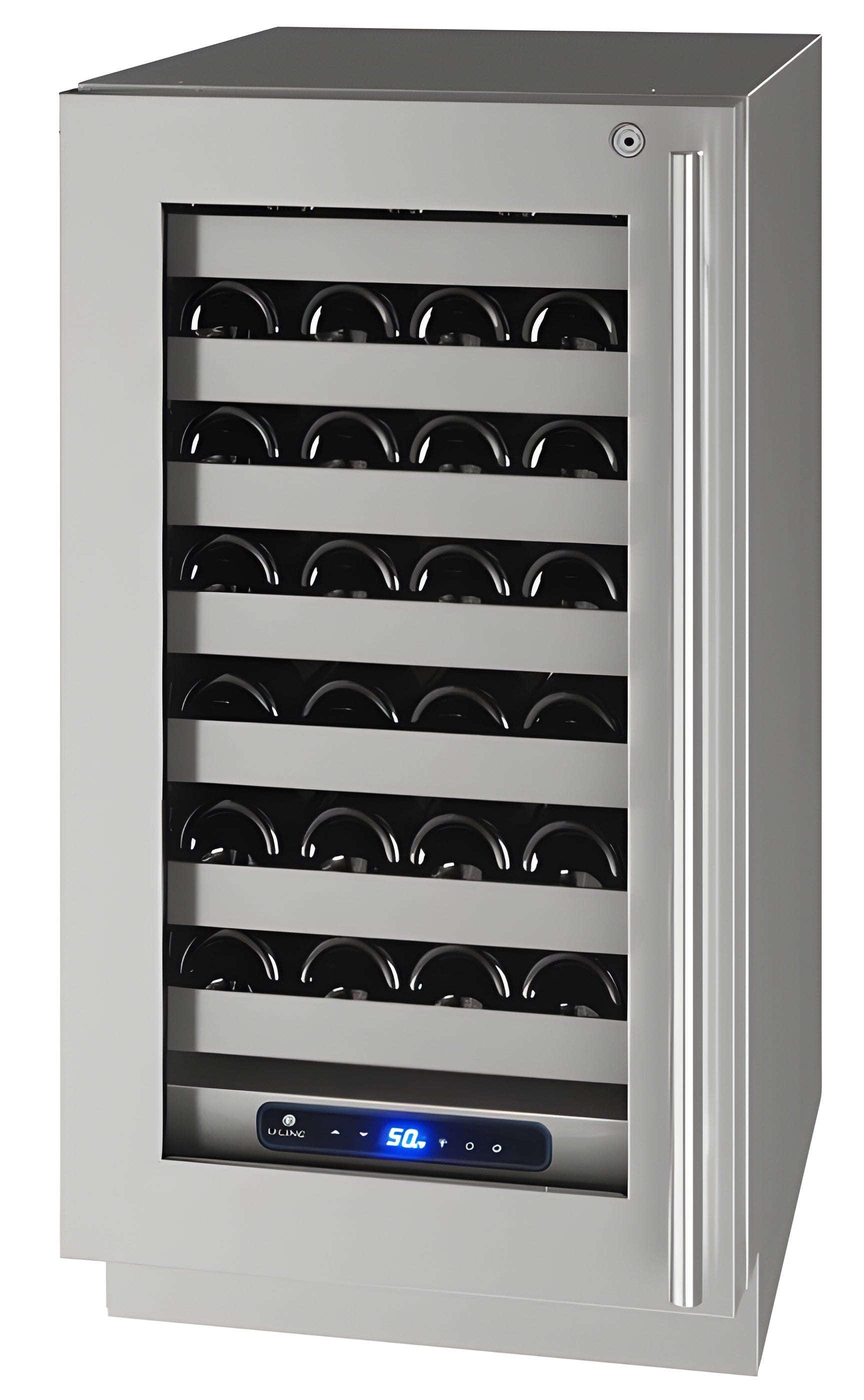 Our 18" 5 Class Wine Refrigerator is a wine lover’s dream, featuring stainless steel inside and out, convection cooling for quick and consistent temperatures, and a state-of-the-art variable speed compressor. This robust and refined model offers an industry-exclusive full-depth lower interior for maximum storage space, adjustable blue and white LED lighting, and U-Adjust™ 19 position adjustment for full extension wine racks. It can be built-in or used freestanding and is available with stainless steel or integrated door finishes that accept a custom door panel to match your surrounding cabinetry.