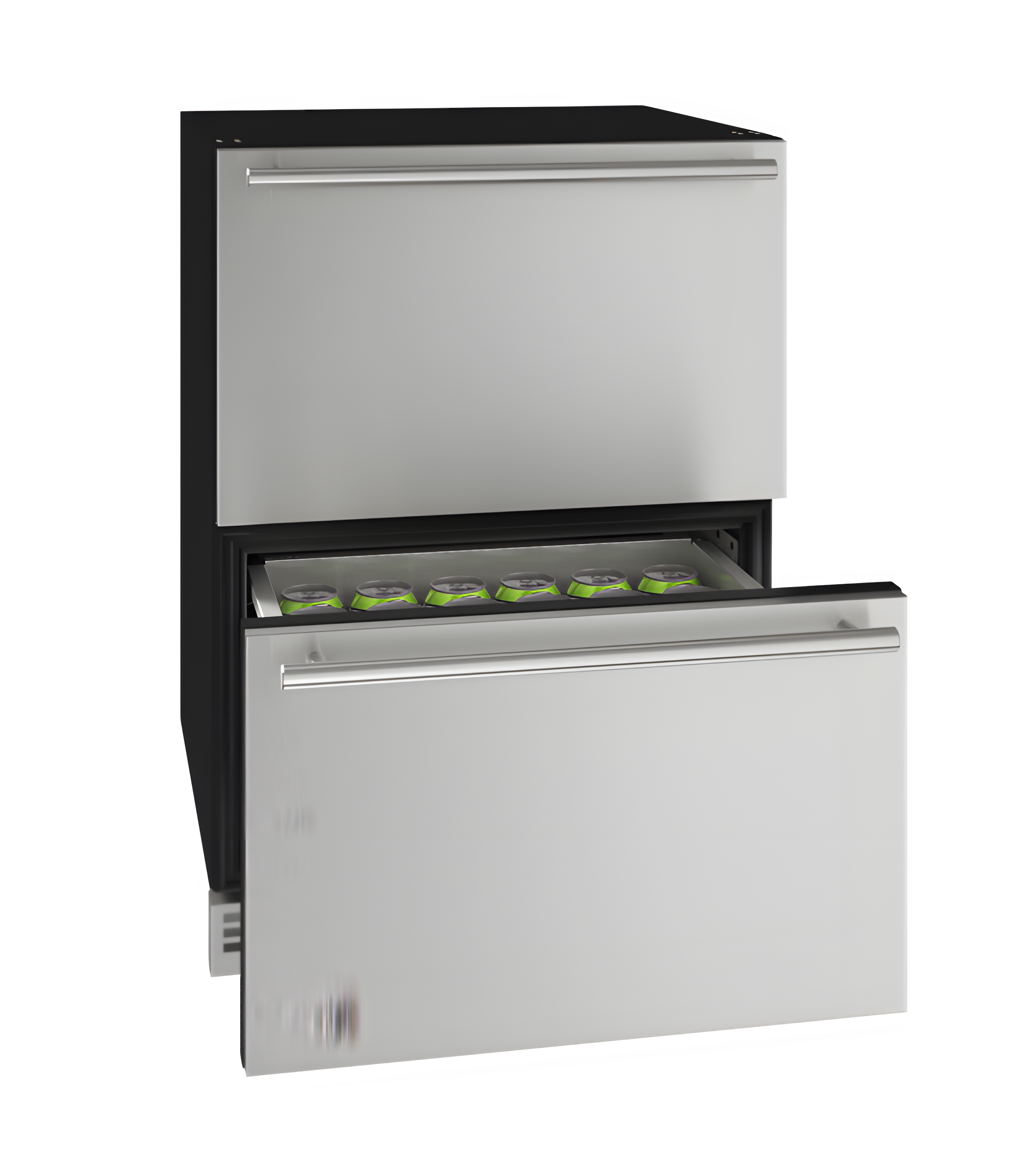 Store fresh produce, deli foods, pantry items, beverages, and more in our 24 1 Class Refrigerator Drawers. This model is available with stainless steel or integrated drawer finishes that accept custom drawer panels to match your surrounding cabinetry. Designed to preserve your favorite ingredients, snacks, and beverages in two slide-out stainless steel drawers, the 1 Class installs beautifully into cabinetry, or in freestanding applications.